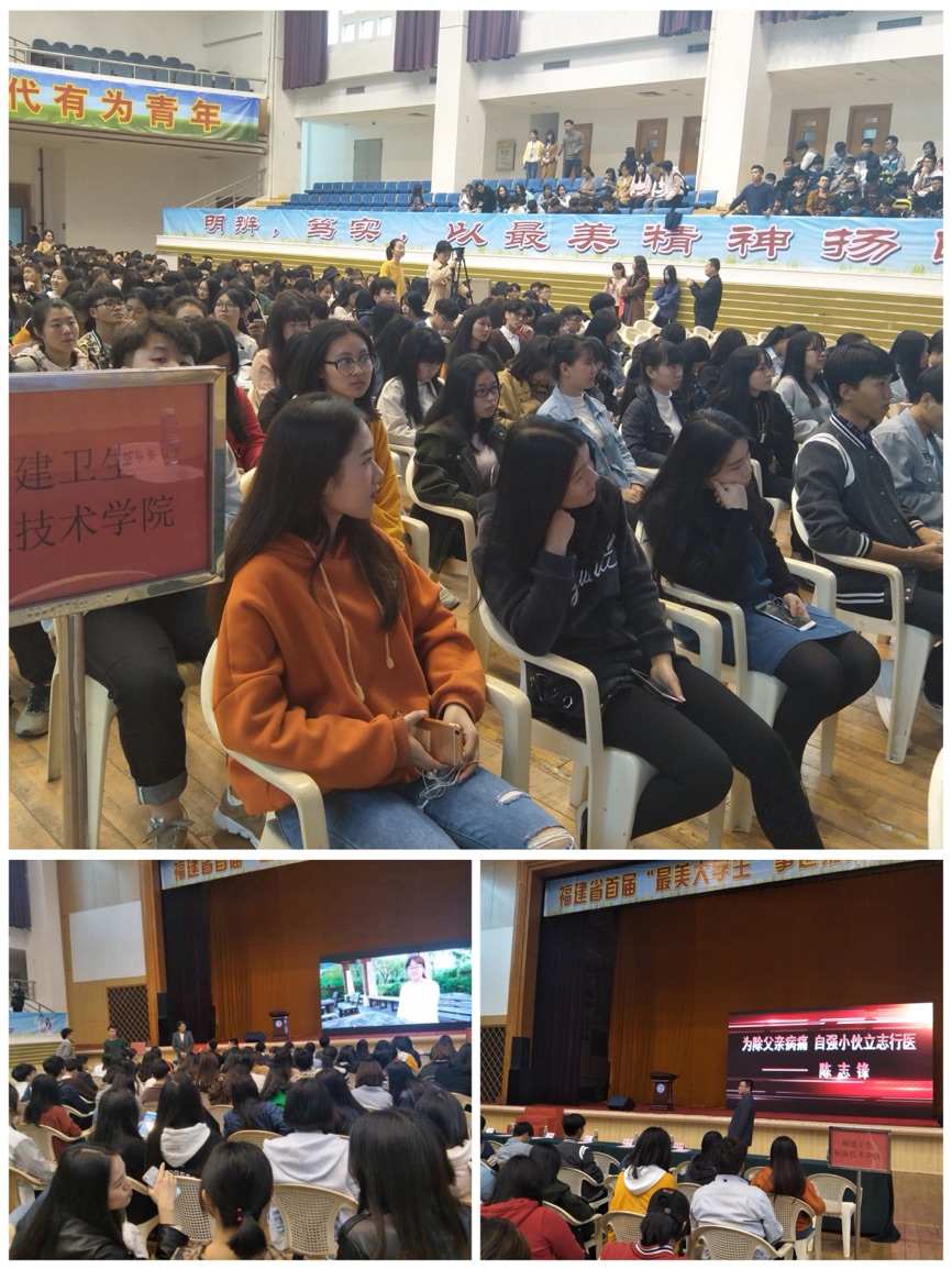 在本次報(bào)告會(huì)中,來自福建農(nóng)林大學(xué)的童璽分享大學(xué)生涯的創(chuàng)業(yè)、學(xué)業(yè)、人生的追夢(mèng)歷程;福建醫(yī)科大的陳志峰分享用笑臉迎接悲慘的人生,播撒善意,傳遞溫暖;福建工程學(xué)院的施玲珊則分享敞開心扉接納他人服務(wù)他人的志愿之美,塑造宣傳踐行歷程的專業(yè)之美;寧德師范學(xué)院的葉思思給在場(chǎng)的師生講述了她永無(wú)止境的學(xué)習(xí),要贏就要贏到最后的比賽實(shí)踐經(jīng)驗(yàn)。四位“最美學(xué)生”的精彩報(bào)告,事例生動(dòng)、故事感人、令人振奮。他們的報(bào)告贏得了現(xiàn)場(chǎng)師生的陣陣掌聲。這場(chǎng)報(bào)告會(huì)給師生們帶來了極大的影響,使他們的精神受到了洗禮,思想得到了升華,靈魂得到了凈化。