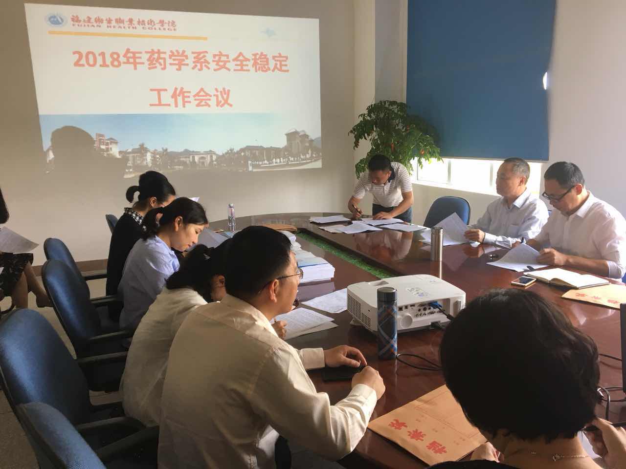 2018年4月12日下午,藥學(xué)系在會(huì)議室召開2018年安全穩(wěn)定工作會(huì)議,藥學(xué)系全體教職工參加本次會(huì)議,會(huì)議由鄭力宏書記主持。