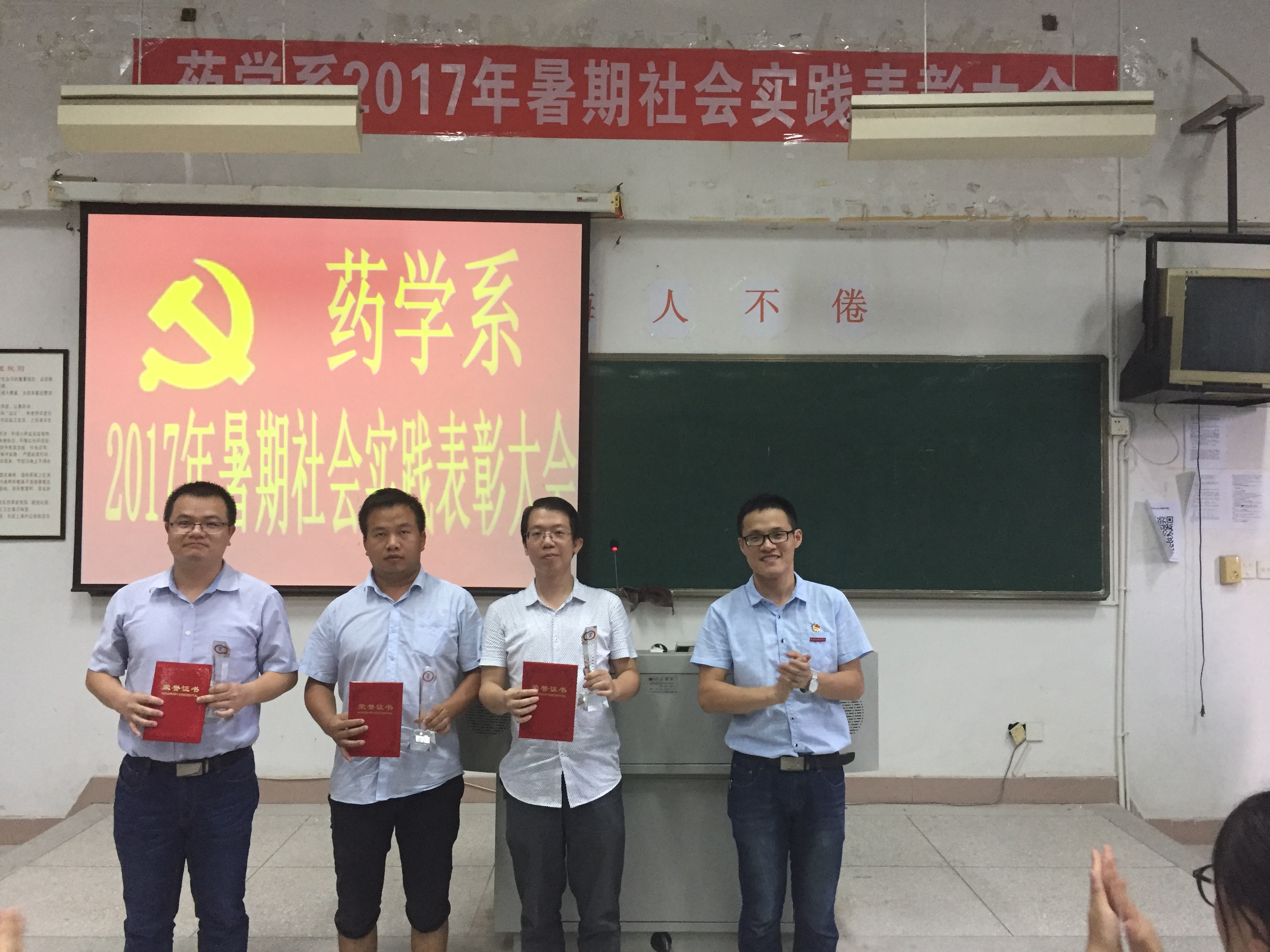 2017年9月28日,藥學(xué)系2017年度暑期社會(huì)實(shí)踐表彰大會(huì)在藥學(xué)系二階隆重舉行。院團(tuán)委黃曦副書(shū)記、藥學(xué)系黨總支鄭力宏書(shū)記、陳潔副書(shū)記、優(yōu)秀指導(dǎo)老師、輔導(dǎo)員及學(xué)生等參加本次大會(huì)。