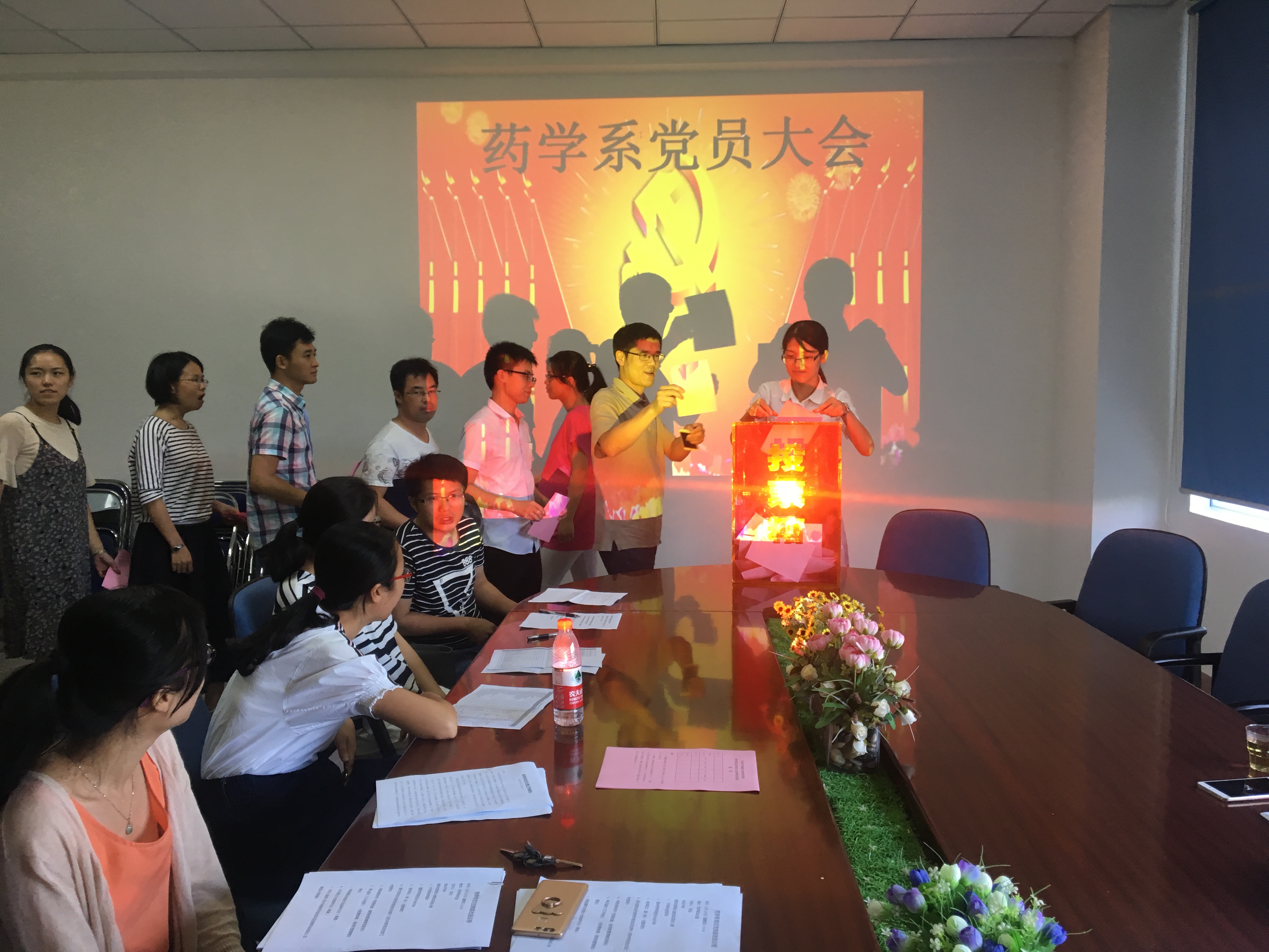大會在莊嚴的《國際歌》聲中拉開了帷幕。會上,系黨總支書記鄭力宏同志代表上屆黨總支作了《藥學系黨總支部工作報告》的工作報告。報告回顧了上屆黨總支三年來的工作。同時,明確了新一屆黨總支領(lǐng)導班子今后的工作思路和主要任務,強調(diào)要提升黨建科學化水平,繼續(xù)扎實推進系部中心工作的開展,不斷探索創(chuàng)新方式方法,強化內(nèi)涵建設(shè),不忘初心,繼續(xù)前進。 黨總支委員何舒瀾同志作了《藥學系黨費收繳情況報告》。兩個報告提交大會審議通過,大會同時通過了選舉辦法、新一屆黨總支委員候選人名單、總監(jiān)票人、監(jiān)票人、計票人。隨后,按照有關(guān)選舉辦法,大會采取無記名投票方式選舉出鄭力宏、陳潔、李泳寧、何舒瀾、葉雅沁等五位同志為我系黨總支新一屆委員。