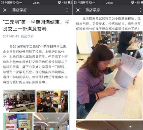 1月18日是16級(jí)“廈門美商”中藥學(xué)二元制班級(jí)的期末考試日,共安排《保健與刮痧》、《艾灸技術(shù)》、《中醫(yī)基礎(chǔ)理論》、《經(jīng)絡(luò)與腧穴》四門課程考試。廈門美商企業(yè)高度重視二元制班級(jí)的期末考試安排工作??紙?chǎng)安排在美商海滄藥廠的辦公樓,美商公司的企業(yè)班主任胡老師組織考務(wù)工作,28名“廈門美商”中藥學(xué)二元制班級(jí)學(xué)生全部到場(chǎng)。藥店管理學(xué)院院長潘虹親臨考場(chǎng)巡視,學(xué)院教務(wù)處的程璐老師和藥學(xué)系教學(xué)辦潘雪豐老師、康婷婷教學(xué)秘書進(jìn)行了全程監(jiān)考,保證了“廈門美商”中藥學(xué)二元制班級(jí)期末考試的井然進(jìn)行。藥店管理學(xué)院的藥店學(xué)府微信公眾號(hào)并做了報(bào)道。
