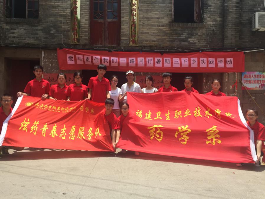 7月4日下午,福建衛(wèi)生職業(yè)技術(shù)學(xué)院藥學(xué)系“炫藥青春”服務(wù)隊結(jié)束了為期2天的連江縣安凱鄉(xiāng)安海村大學(xué)生暑期“三下鄉(xiāng)”社會實踐活動。本次暑期社會實踐活動的主要內(nèi)容有:分發(fā)健康報普及醫(yī)療知識,為村民進行測量血壓、血糖、視力的義診活動,發(fā)放由黃氏藥業(yè)贊助的藥品和具有本系中藥特色的香囊,以及給貧困家庭孩子贈送學(xué)習(xí)用品。