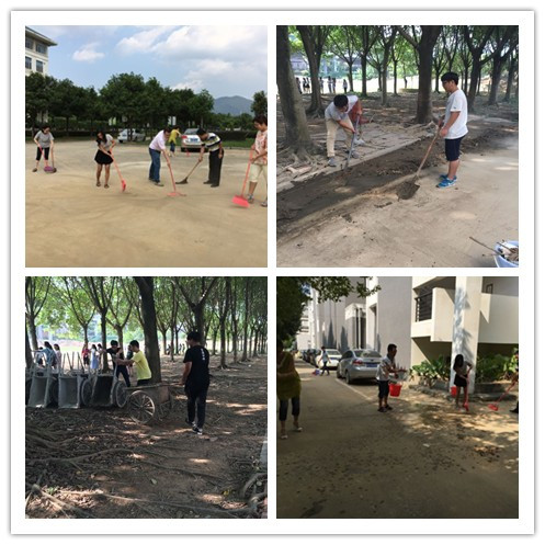 藥學(xué)系三個黨支部書記帶領(lǐng)全體黨員教師與學(xué)生一起,在藥學(xué)系大樓、明湖餐廳、10、11、12、13號樓四周開展災(zāi)后大掃除工作。大家頂著烈日,有條不紊地進(jìn)行分工合作,清掃衛(wèi)生死角、擦洗垃圾桶、擦除護(hù)欄上的“野廣告”等。尤其是學(xué)生宿舍13號樓淤泥很多,在黨員教師的帶動下,16級新生班級學(xué)生用鐵鏟清除大量淤泥,用板車把垃圾運(yùn)到田徑場垃圾場。經(jīng)過大家近一個小時的艱苦奮戰(zhàn),藥學(xué)系包干區(qū)的環(huán)境衛(wèi)生得到大大改觀。