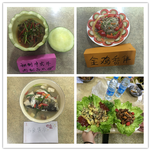 大賽以主持人精彩的開(kāi)場(chǎng)白拉開(kāi)序幕,參賽人員都為自己的“佳肴”做足了充分的準(zhǔn)備,主持人一聲令下,同學(xué)們爭(zhēng)分奪秒,比賽現(xiàn)場(chǎng)熱火朝天,評(píng)委老師也是親臨現(xiàn)場(chǎng)監(jiān)督指導(dǎo),給予參賽人員更多的信心。不足半小時(shí),美食就登場(chǎng)了,蚵仔煎、什錦炒飯、蒜蓉大蝦、強(qiáng)爆荔枝肉、水果拼盤、韭菜餃子等各種美味佳肴應(yīng)有盡有,在參賽人員生動(dòng)解說(shuō)中,評(píng)委們大開(kāi)吃戒,不時(shí)嘖嘖稱贊,最后14藥學(xué)301班成功開(kāi)啟評(píng)委味覺(jué)新體驗(yàn)奪得第一,14藥學(xué)302及14藥學(xué)306以色香味俱全的“大菜”榮獲第二,15藥學(xué)306、14中藥301、14保健品301不分伯仲奪得三等獎(jiǎng)。