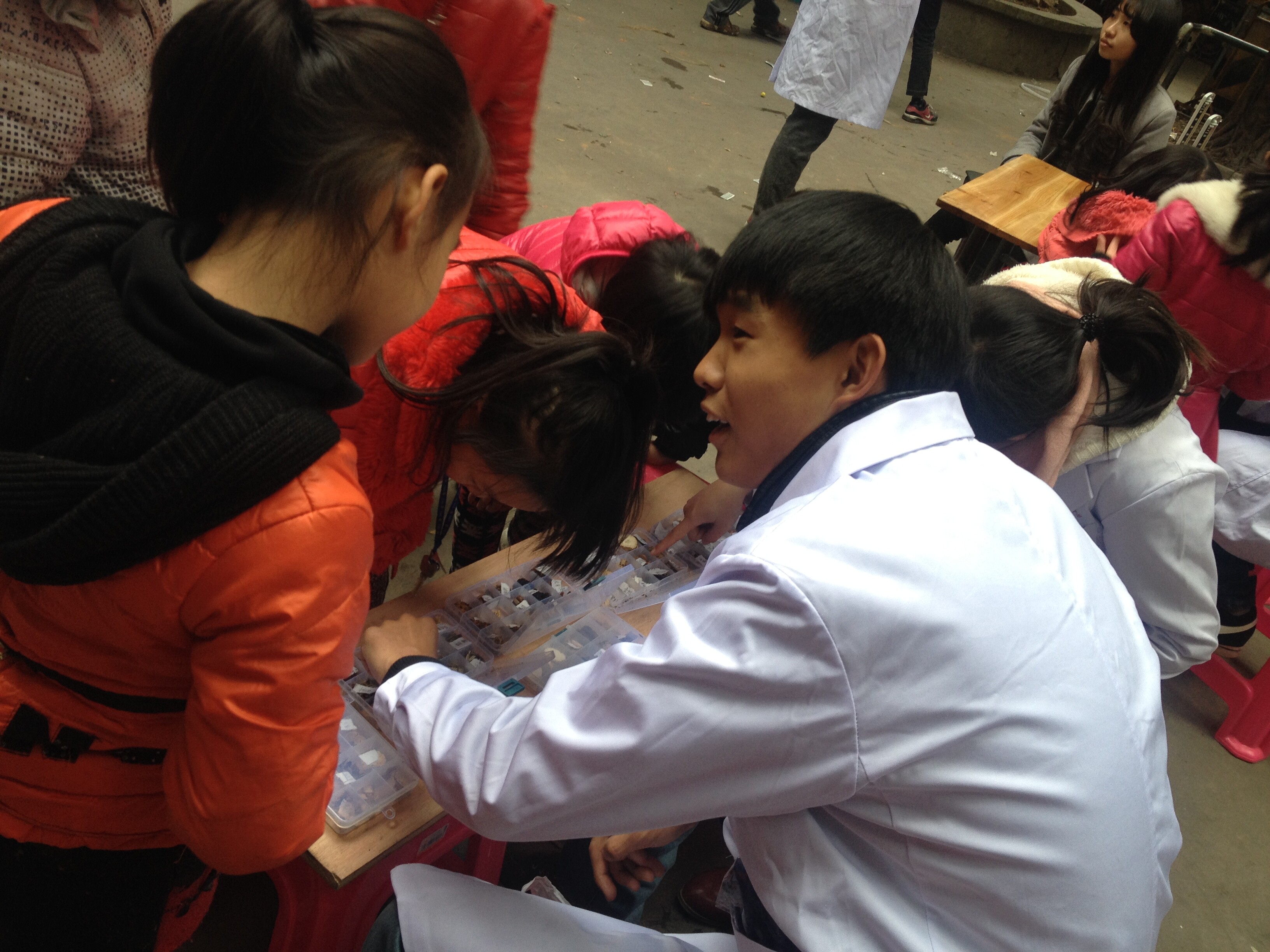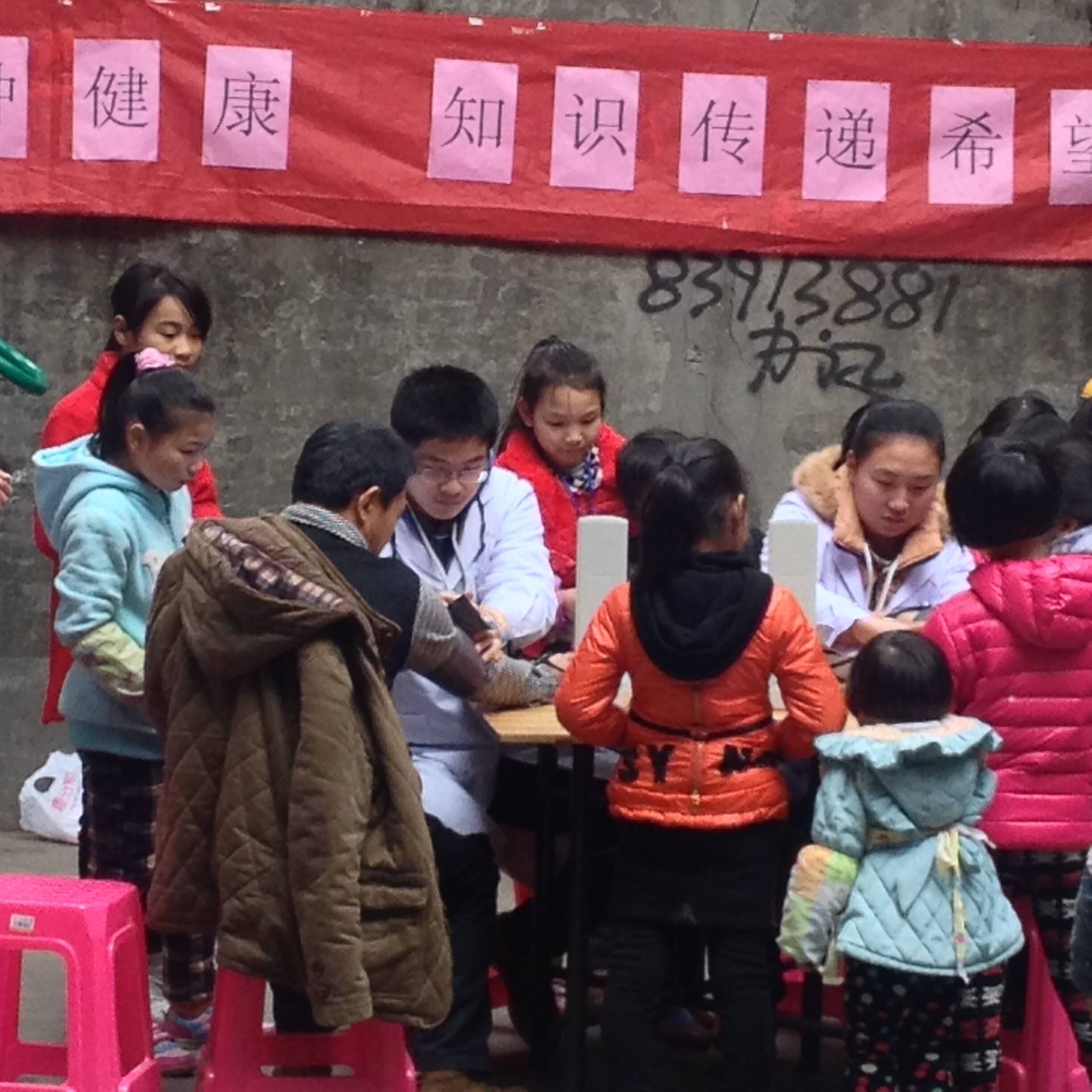 在榕樹(shù)坊后,面對(duì)著眼前一張張充滿好奇的臉龐,大家二話不說(shuō)立時(shí)開(kāi)始投入工作。同學(xué)拿出早已分類(lèi)準(zhǔn)備好的中藥,給人們普及中藥知識(shí),孩子們都展現(xiàn)出了強(qiáng)烈的好奇心;還有同學(xué)為中老年人量血壓,并告之高血壓的預(yù)防措施以及如何更好的控制高血壓;其余同學(xué)則帶著滿滿的熱情陪孩子們玩耍,給孩子們講解故事……