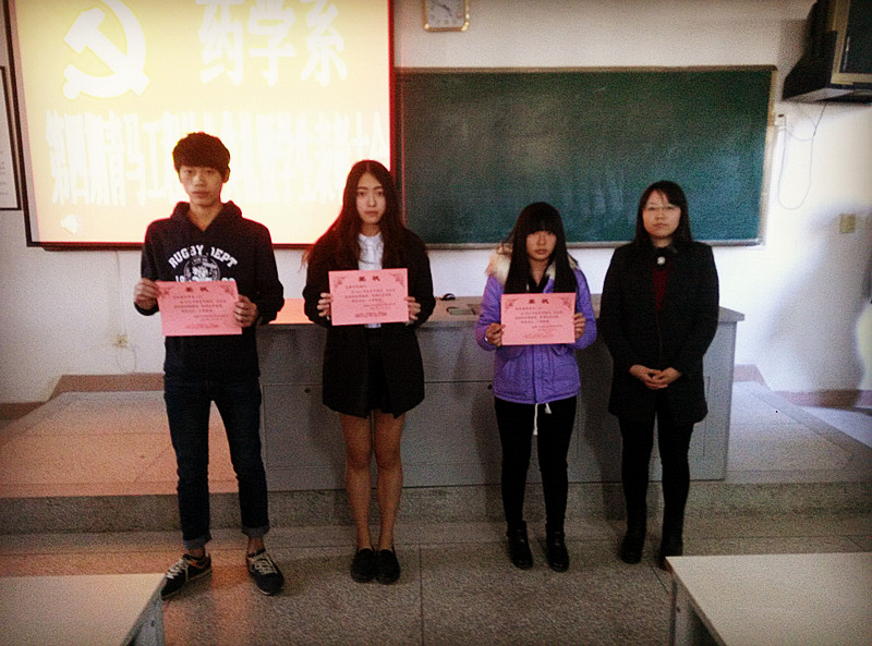 伴隨著《國(guó)歌》奏唱完畢,大會(huì)正式開始。首先由系團(tuán)總支書記林麗鳳老師宣讀藥學(xué)系第四期“青馬工程”結(jié)業(yè)名單及優(yōu)秀學(xué)員名單,接著本期優(yōu)秀學(xué)員代表鄭金潼同學(xué)上臺(tái)發(fā)言,表示以后將繼續(xù)不斷提高自我修養(yǎng)。系團(tuán)總支書記林麗鳳老師、胡丹老師及黃嵩梅老師為此次培訓(xùn)中的優(yōu)秀學(xué)員代表頒發(fā)了獎(jiǎng)狀及獎(jiǎng)品。