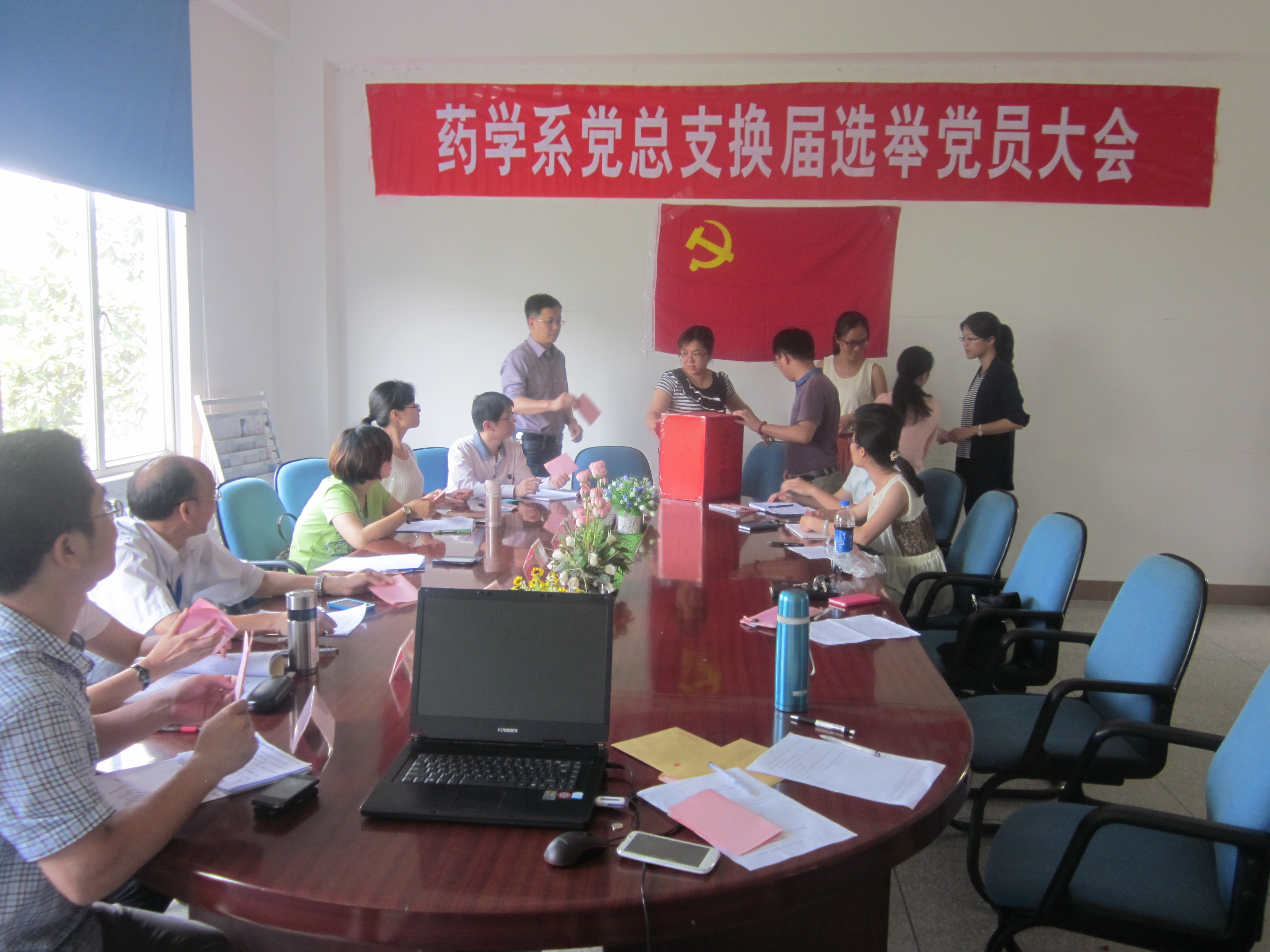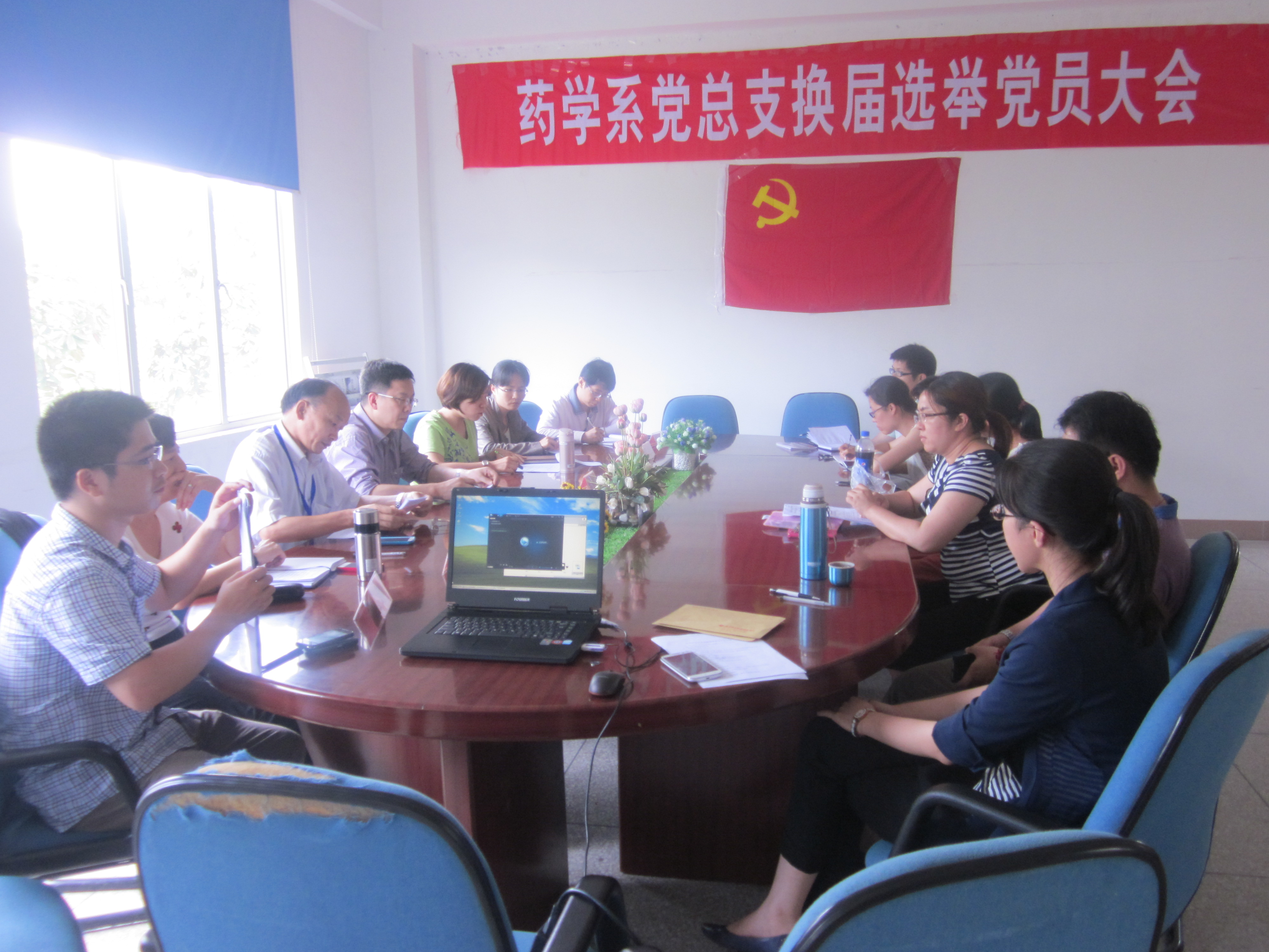 5月27日下午,藥學系黨總支換屆選舉全體黨員大會在系會議室隆重舉行。學院副院長廖偉堅同志出席了大會,會議由系黨總支委員鄭煒同志主持。