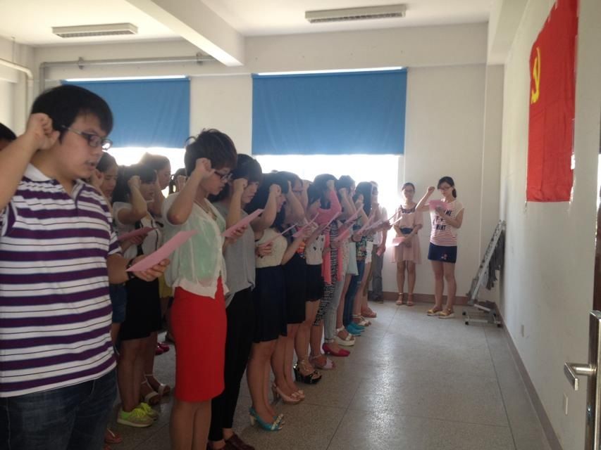 2014年6月30日上午8:30,“藥學(xué)系新黨員入黨宣誓儀式”在藥學(xué)系會議室隆重舉行。參加此次活動的有藥學(xué)系黨總支書記蘇愛華,副書記林穎峰,系各黨支部書記和全體參加新黨員入黨宣誓的溫輝輝等44名學(xué)生。