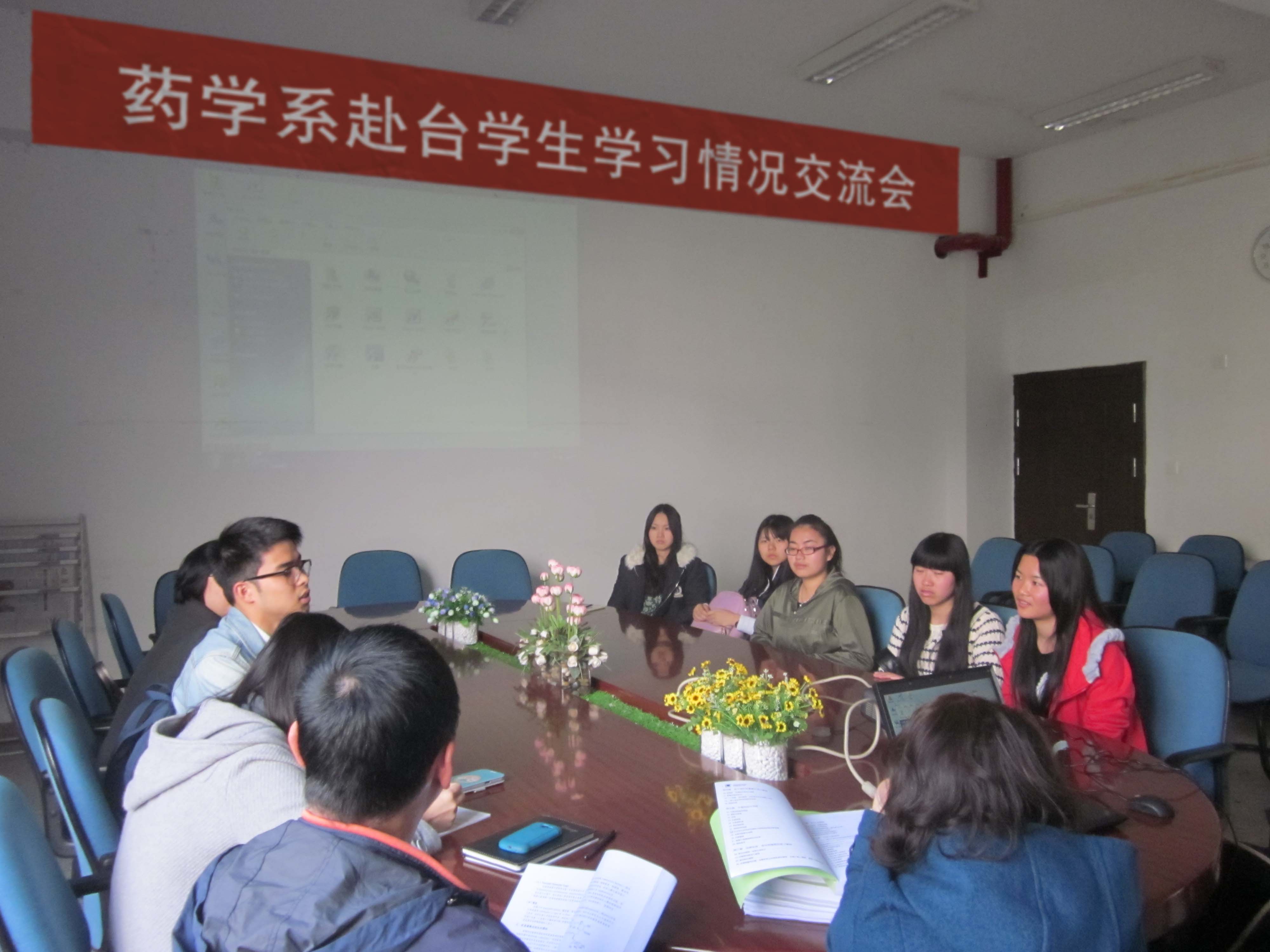 2014年2月26日下午,在藥學(xué)系會議室召開了赴臺學(xué)生學(xué)習(xí)情況交流會。2012級藥學(xué)專業(yè)的6位同學(xué)、藥學(xué)系肖健副主任、本次赴臺的指導(dǎo)老師邱騰穎老師以及馮珊老師、林穎峰老師、教學(xué)秘書康婷婷老師以及輔導(dǎo)員林麗鳳老師參加了交流會。