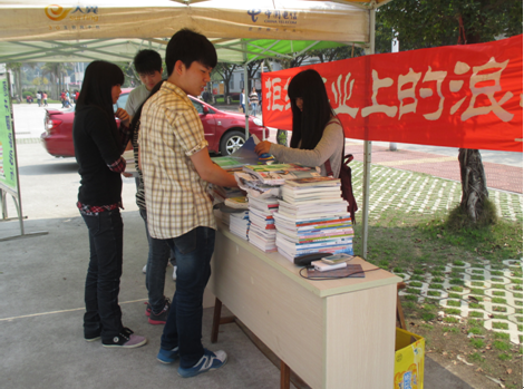 又是一年實習(xí)和畢業(yè)季,恰逢4月份的世界讀書日,為解決同學(xué)們?nèi)绾翁幚砗裰氐膱D書問題,實現(xiàn)圖書價值的再利用,藥學(xué)系學(xué)生會實踐部于2014年3月18日、19日分別在一餐門口及明湖餐廳門口舉行圖書募捐活動,希望借此契機讓同學(xué)們讀過的勵志書、文學(xué)作品、文學(xué)雜志及教材募捐,用以幫助貧困的孩子,為他們提供“知識改變命運”的動力?;顒赢?dāng)天,捐書的學(xué)生絡(luò)繹不絕,工作人員也熱火朝天,搬書、整理、分類......悶熱的天氣絲毫沒有影響大家的情緒,數(shù)量可觀的圖書是最好的回報?;顒咏Y(jié)束,所得圖書將捐贈給臺江區(qū)達道社區(qū)圖書室。
