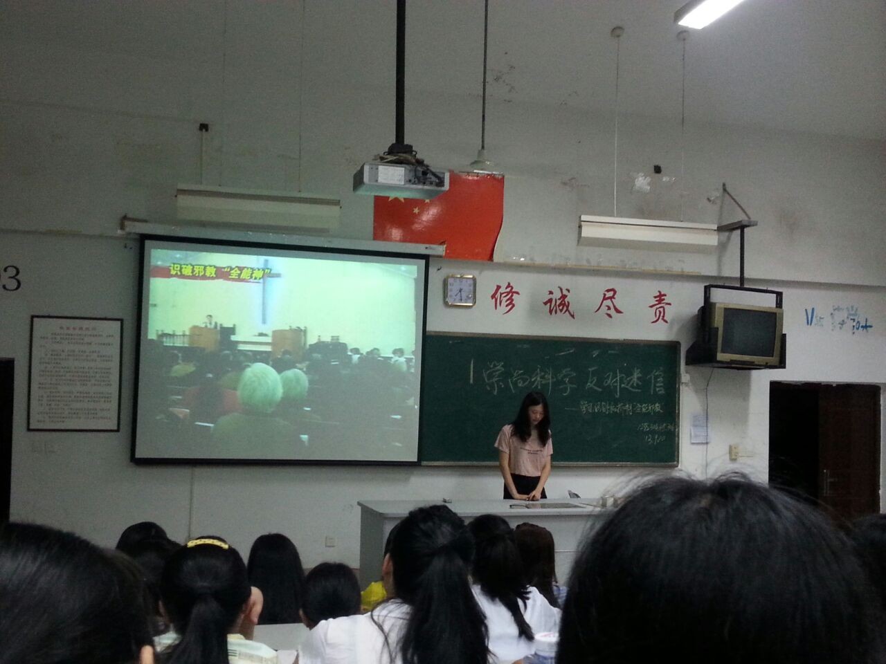 9月10日,藥學系黨總支根據(jù)省委防范處理邪教辦有關通知要求和學院黨委的通知,要求輔導員組織藥學系各班同學針對“全能神”邪教組織開展宣傳教育活動。我系12級各班學生在藥一階和藥二階等晚自習教室開展《崇尚科學,反對迷信——識別和抑制“全能神”邪教組織》主題班會,學習上級反邪教宣傳提綱,觀看反邪教宣傳教育片。