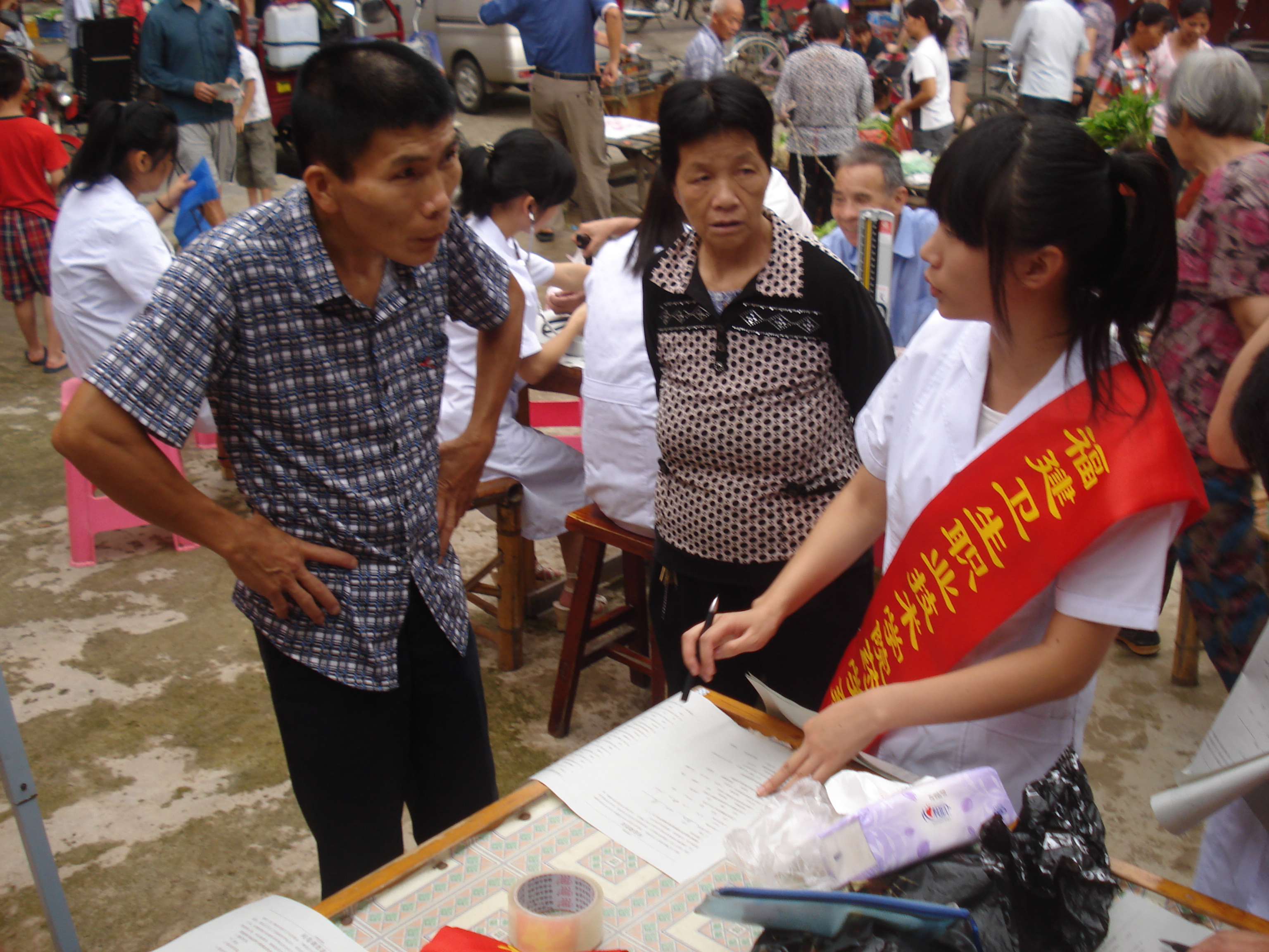 6月23日至24日,藥學(xué)系暑期“三下鄉(xiāng)”社會(huì)實(shí)踐隊(duì)在系團(tuán)總支書記王鈍銳老師的帶領(lǐng)下深入閩侯荊溪鎮(zhèn)關(guān)口村開(kāi)展2012年暑期“三下鄉(xiāng)”社會(huì)實(shí)踐活動(dòng):組織關(guān)口村村民進(jìn)行了醫(yī)療用藥知識(shí)的問(wèn)卷調(diào)查;舉辦了“醫(yī)療健康知識(shí)講座”;為村里的居民講解日常用藥安全知識(shí);開(kāi)展了健康宣傳及體檢活動(dòng),為200多名村民進(jìn)行血壓測(cè)量及健康咨詢活動(dòng)。