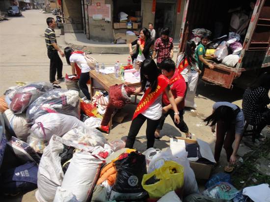 活動(dòng)中,同學(xué)們冒著烈日分發(fā)宣傳單單,每人都盡著自己的綿薄之力號(hào)召關(guān)口村村民們積極參與到這次活動(dòng)中來(lái),雖然每個(gè)人都是大汗淋漓,但看著居民們從家里提著一袋袋的衣物,望著那滿滿的一貨車衣服以及村民們那滿滿的愛(ài)心,同學(xué)們都倍感欣慰。