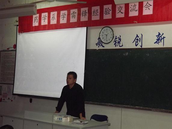 2012年4月26日藥學(xué)系團(tuán)總支在藥學(xué)系第一階段教室舉行藥學(xué)系學(xué)雷鋒經(jīng)驗交流會,全系20個班級團(tuán)支部書記以PPT的形式進(jìn)行學(xué)雷鋒活動匯報,向同學(xué)們介紹三月份以來所開展的一系列豐富多彩的學(xué)雷鋒活動,藥學(xué)系團(tuán)總支書記王鈍銳老師,藥學(xué)系團(tuán)總支副書記陳炳秀老師以及系團(tuán)總支委員出席了此次大會。