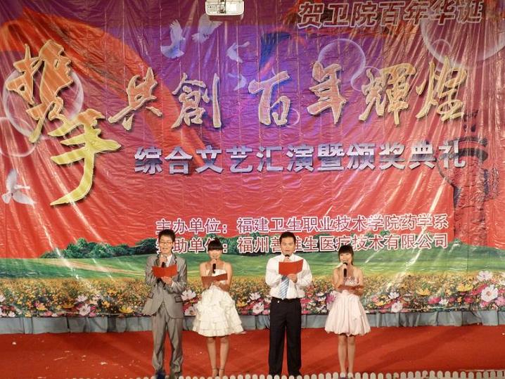 我系于5月13日晚在學(xué)術(shù)廳隆重舉行了藥學(xué)系 “攜手共創(chuàng) 百年輝煌”綜合文藝匯演暨頒獎(jiǎng)典禮,本次晚會(huì)得到福州善維生醫(yī)療技術(shù)有限公司友情贊助。學(xué)院黨委嚴(yán)肅書(shū)記、黃開(kāi)良副院長(zhǎng)、魏立娜副院長(zhǎng)、學(xué)生工作處黃銘珊處長(zhǎng)、福州善維生醫(yī)療技術(shù)有限公司陳曦總經(jīng)理、學(xué)院團(tuán)委宋維副書(shū)記、藥學(xué)系黨總支蘇愛(ài)華副書(shū)記、護(hù)理系團(tuán)總支書(shū)記林媛老師、醫(yī)學(xué)技術(shù)系團(tuán)總支書(shū)記黃小芳老師、臨床醫(yī)學(xué)系團(tuán)總支書(shū)記陳盛蘭老師和藥學(xué)系各班輔導(dǎo)員、班主任老師蒞臨晚會(huì)現(xiàn)場(chǎng)。