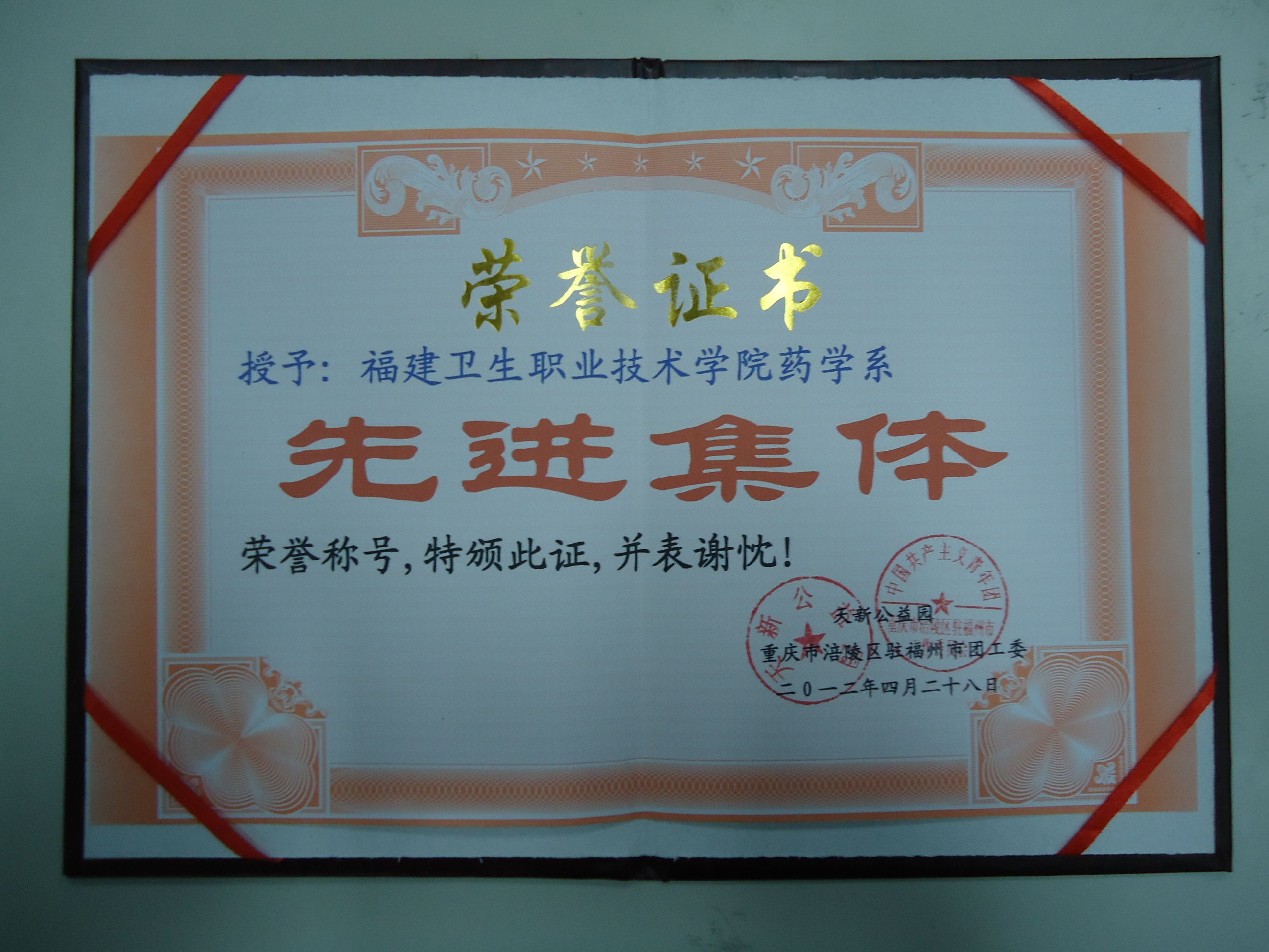 2012年4月25日,我系與天新公益園共同舉辦的“捐衣獻(xiàn)愛心,情意暖山區(qū)”活動,感謝學(xué)院領(lǐng)導(dǎo)的支持和鼓勵,感謝各兄弟系部的大力支持和無私幫助,我們已將活動所得的所有衣物送至偏遠(yuǎn)山區(qū),天新公益園也向我系發(fā)來感謝信和榮譽(yù)證書,感謝我院師生團(tuán)結(jié)一致,熱心公益。