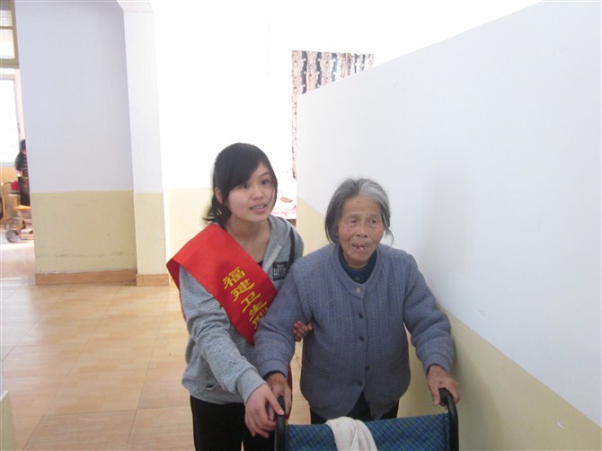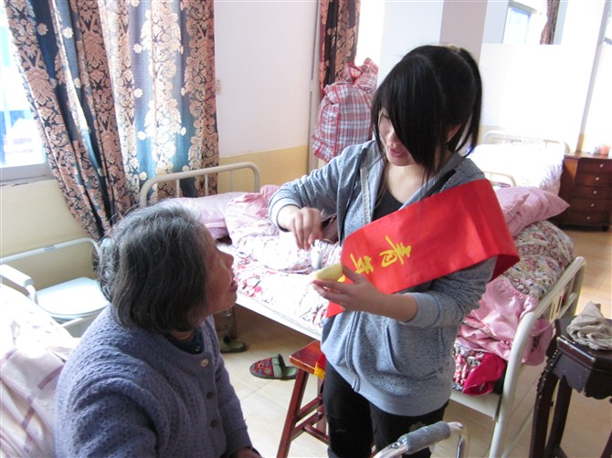 11藥學302團支部以‘敬老愛親的道德行為、培育良好的文明風尚’為主題,組織本班同學到“國醫(yī)康護院”’看望老人,同時也為老人們準備了熬粥的材料。同學們?yōu)闋敔斈棠檀繁诚茨_、整理床褥、打掃衛(wèi)生……當同學們將自己親手煮的“拗九粥”和慰問品送到老爺爺、老奶奶的手中時,老人們綻開了最甜美的笑容。