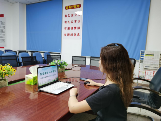 ↑肖雅芳老師為學(xué)生開心理健康主題班會(huì)