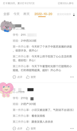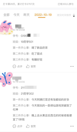 (學生“開心事”打卡內容)