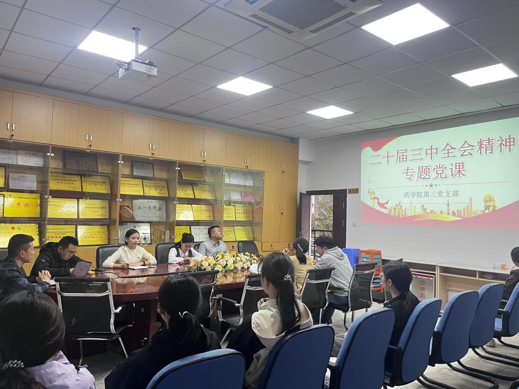 為深入學(xué)習(xí)貫徹黨的二十屆三中全會精神,11月20日下午,藥學(xué)院第三黨支部在藥學(xué)院會議室開展學(xué)習(xí)貫徹黨的二十屆三中全會精神專題黨課。