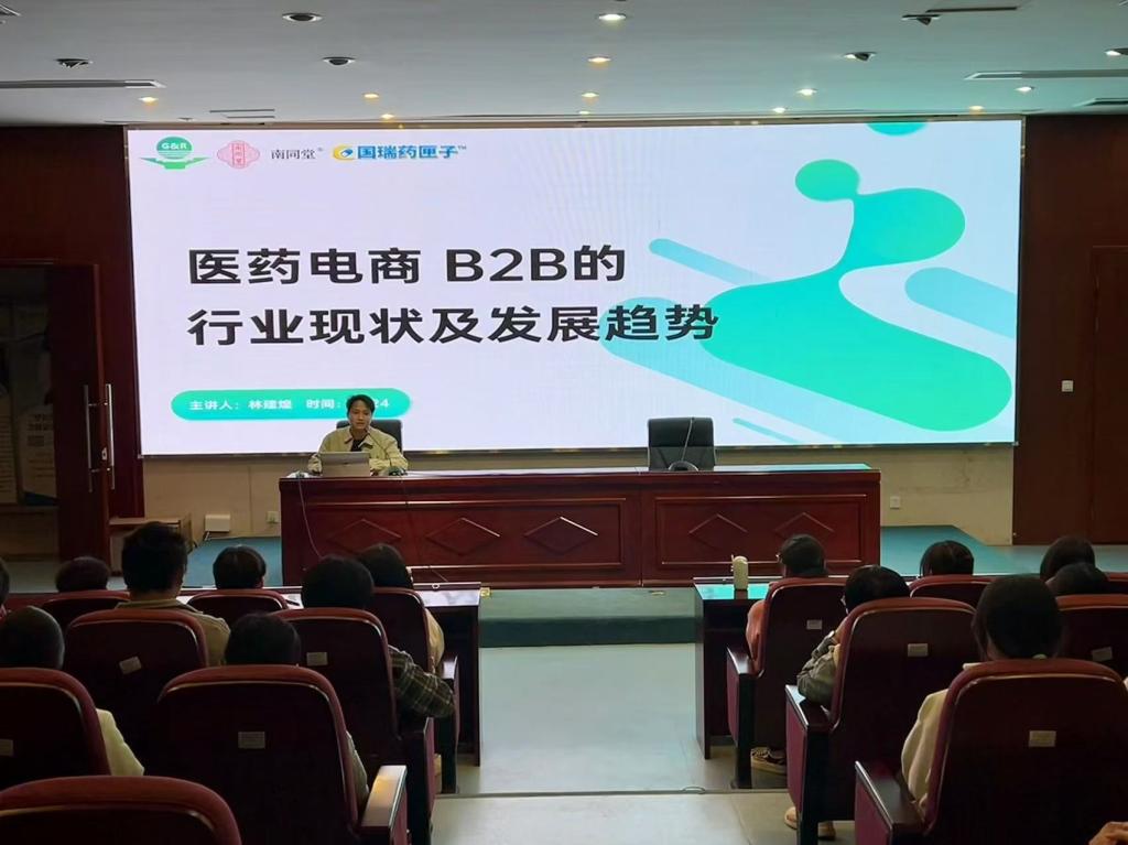 國(guó)瑞健康產(chǎn)業(yè)集團(tuán)林建煌和鄭凌楓給同學(xué)們著重分享了三方面的內(nèi)容。一是醫(yī)藥電子商務(wù)實(shí)戰(zhàn)經(jīng)驗(yàn)分享,二是醫(yī)藥電商B2B的行業(yè)現(xiàn)狀及發(fā)展趨勢(shì),三是C端醫(yī)藥電商市場(chǎng)現(xiàn)狀分析。
