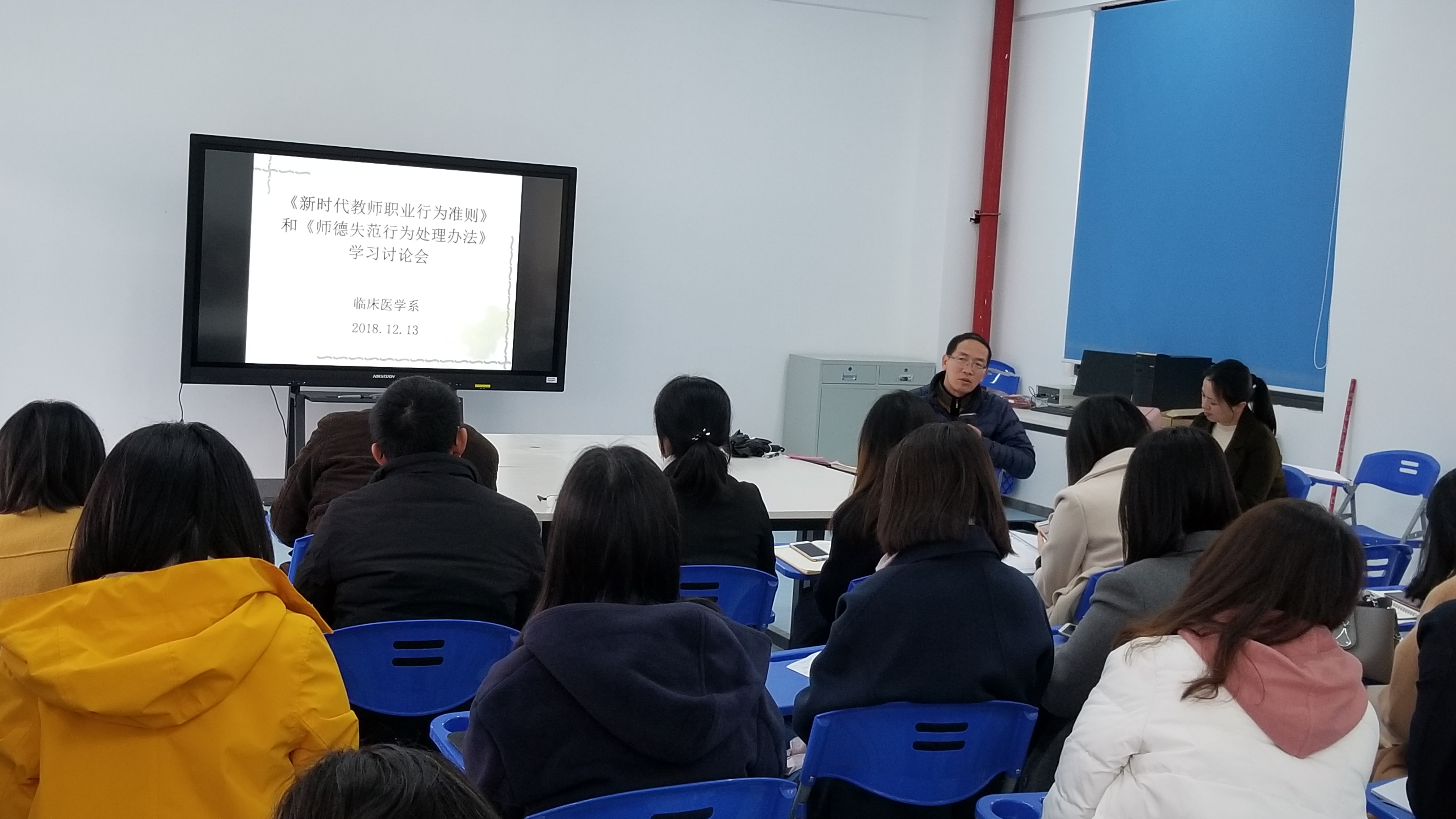 針推教研室張?zhí)N老師及康復(fù)教研室郭潔梅老師作為教師代表作了主題發(fā)言,通過教學(xué)過程中的實(shí)際體驗(yàn),分享進(jìn)一步提升師德師風(fēng)的方法。