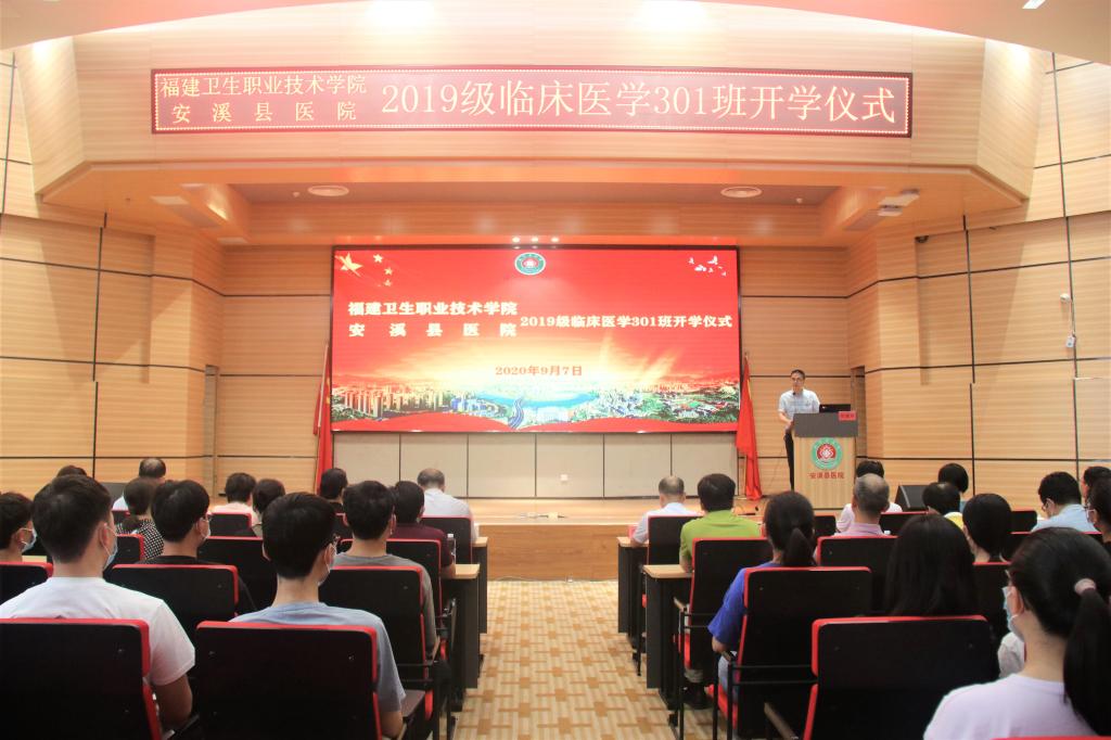 2020年9月7日,我系2019級臨床醫(yī)學301班在安溪縣醫(yī)院多功能廳舉行校企合作班的開班儀式,這是我院首次與安溪縣醫(yī)院開展的院校合作。我院院長許能鋒、副院長鄭翠紅、教務處處長朱扶蓉、臨床系主任郭禮堅、教務處副處長梁艷,安溪縣醫(yī)院陳鑫壇院長、相關職能科室負責人及2019級臨床301班學生參加。開班儀式由安溪縣醫(yī)院副院長劉朝陽主持。