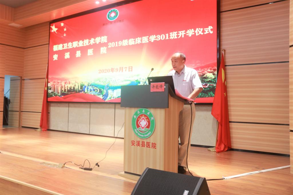 我院許能鋒院長對2019級臨床醫(yī)學301班在安溪縣醫(yī)院正式開班表示祝賀,希望同學們要加強醫(yī)學知識的學習,奠定良好的文化素質和專業(yè)技能,同時不忘提升自己的職業(yè)素養(yǎng),培養(yǎng)自己的責任心和使命感。要求同學們不忘初心、努力奮斗,為健康中國共同努力,實現(xiàn)夢想,鑄就輝煌的未來。