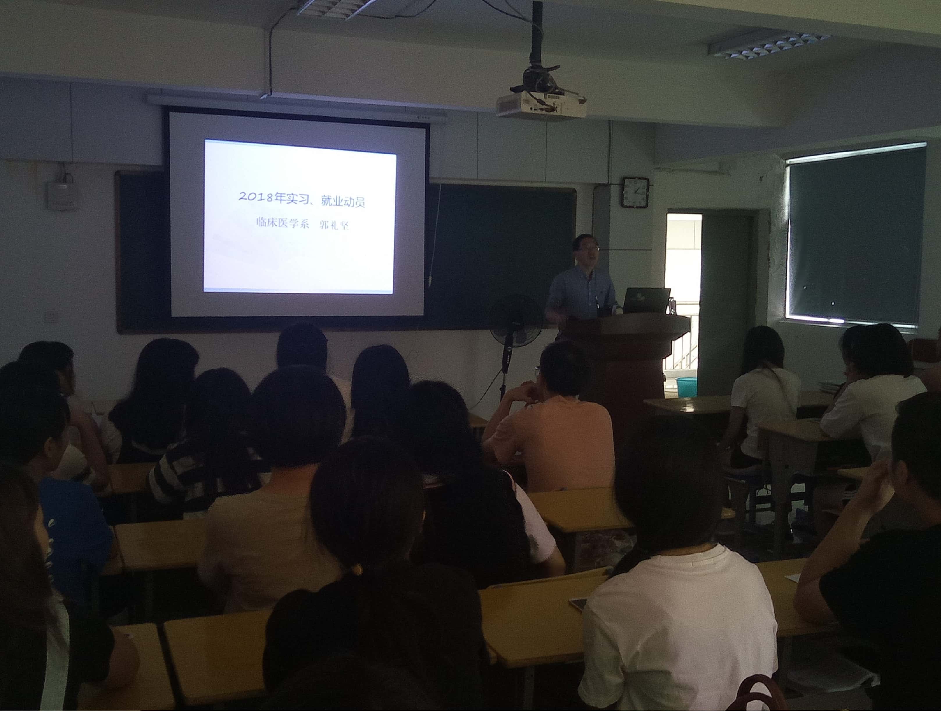 在實(shí)習(xí)動(dòng)員大會(huì)上,郭禮堅(jiān)主任首先向同學(xué)們介紹了實(shí)習(xí)的重要性、實(shí)習(xí)期間的紀(jì)律要求,特別強(qiáng)調(diào)了實(shí)習(xí)生要在實(shí)習(xí)中培養(yǎng)嚴(yán)肅認(rèn)真的工作態(tài)度,杜絕差錯(cuò)事故的發(fā)生,要關(guān)心病患,關(guān)愛生命,希望同學(xué)們盡快調(diào)整好心態(tài),為實(shí)習(xí)做好準(zhǔn)備;同時(shí),林國威主任、梁艷科長還具體介紹了臨床實(shí)習(xí)的教學(xué)要求,實(shí)習(xí)成績的評(píng)定方法等;金建文老師針對(duì)專業(yè)角度對(duì)同學(xué)們進(jìn)行了動(dòng)員,強(qiáng)調(diào)同學(xué)們要認(rèn)真學(xué)習(xí)專業(yè)知識(shí),為即將到來的實(shí)習(xí)做好充足準(zhǔn)備,同時(shí)要注意實(shí)習(xí)中的醫(yī)療安全,學(xué)會(huì)處理好工作中的社會(huì)關(guān)系;輔導(dǎo)員劉景城老師現(xiàn)場解答了學(xué)生的實(shí)習(xí)相關(guān)問題。通過此次實(shí)習(xí)動(dòng)員大會(huì),使得即將進(jìn)入臨床實(shí)習(xí)的同學(xué)們對(duì)實(shí)習(xí)有了深入的了解和全面的認(rèn)識(shí),更加明確了實(shí)習(xí)的目的和重要性,相信大家一定會(huì)在實(shí)習(xí)中以飽滿的熱情和良好的狀態(tài)完成實(shí)習(xí)任務(wù),并收獲累累碩果,為今后走上工作崗位打下堅(jiān)實(shí)的基礎(chǔ)。