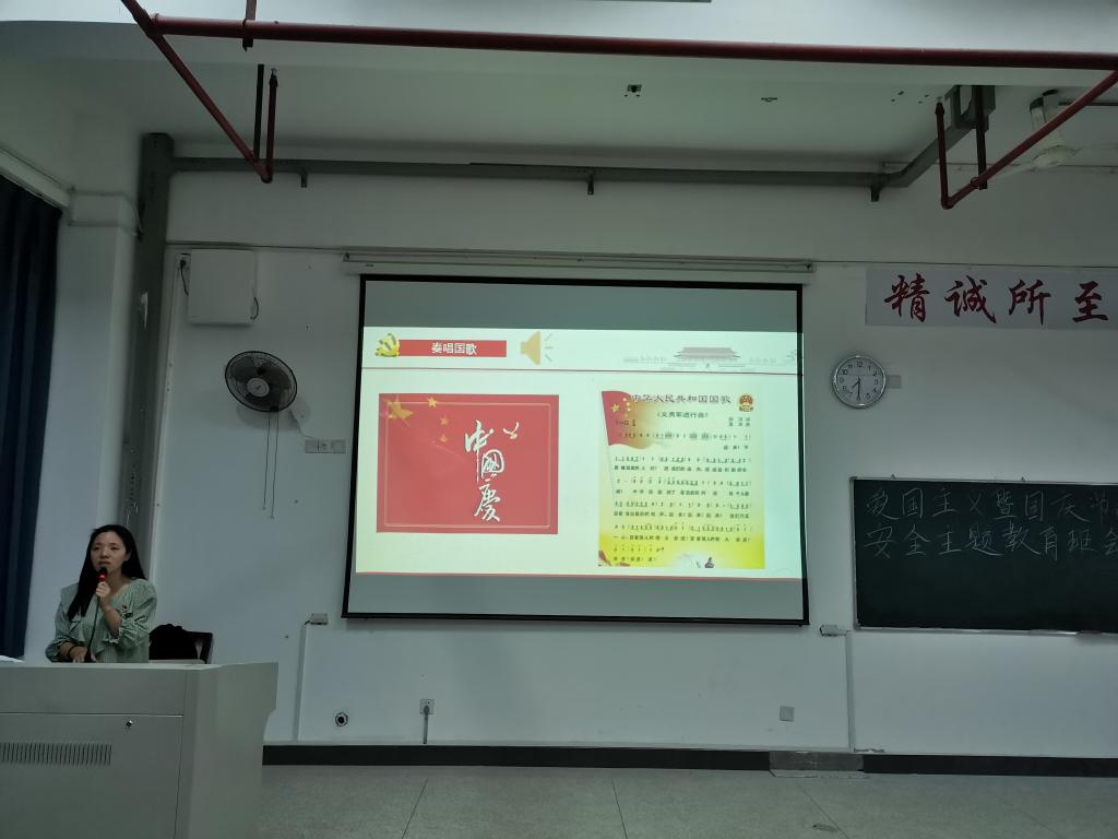 伴著激昂的國歌聲中活動拉開序幕,首先由各班級團(tuán)支書生動講述介紹中華人民共和國成立70周年來特別是黨的十八大以來發(fā)生的巨大變化、取得的偉大成就,激發(fā)愛國之情,強(qiáng)化愛國之志;隨后班級代表人帶領(lǐng)本班同學(xué)朗誦《祖國頌》表達(dá)了同學(xué)們是對祖國的禮贊,也是對青年的勉勵;最后,整個主題團(tuán)日活動在齊聲唱團(tuán)歌中圓滿結(jié)束。同時,還邀請各班級輔導(dǎo)員在團(tuán)日活動中給各班團(tuán)支部上微團(tuán)課,介紹中華人民共和國成立70周年以來的成就、通過這些成就的介紹引領(lǐng)廣大青年發(fā)揮團(tuán)員作用、積極學(xué)習(xí)、貢獻(xiàn)本領(lǐng)與祖國共奮進(jìn)。