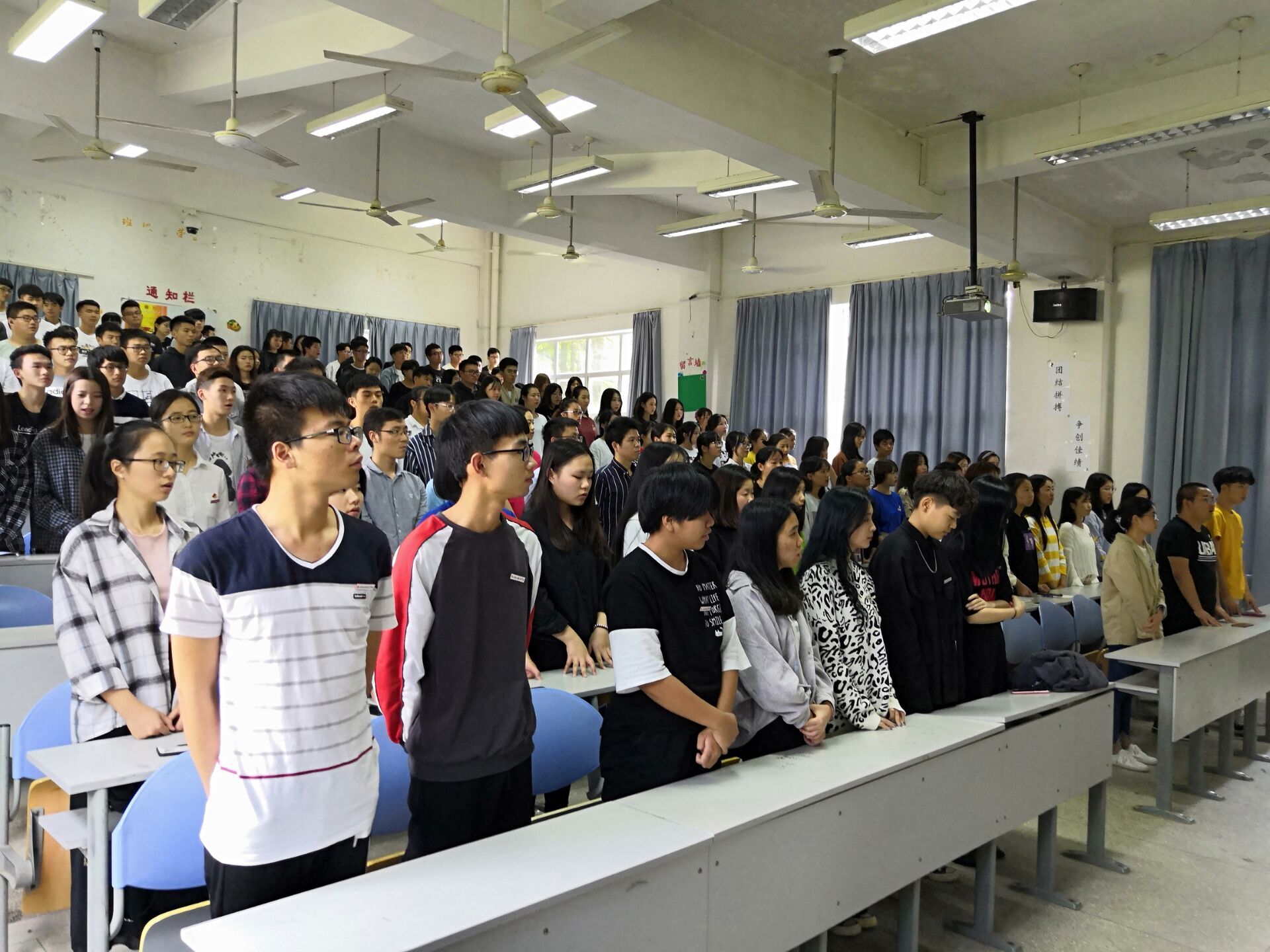 典禮隨著莊嚴(yán)的國歌聲拉開帷幕。首先,醫(yī)學(xué)技術(shù)系團(tuán)總支書記黃玲云老師上臺宣讀了本期業(yè)余分團(tuán)校學(xué)員名單。隨后臨床醫(yī)學(xué)系團(tuán)總支副書記謝林輝老師對大家提出了期盼和建議:希望大家珍惜難得的學(xué)習(xí)機(jī)會,樹立正確的理想信念,不僅是在思想上,更要在行動上積極向共青團(tuán)靠近,并祝愿全體學(xué)員在團(tuán)校各項課程中取得進(jìn)步。學(xué)員們認(rèn)真聽取建議,為接下來的學(xué)習(xí)做好準(zhǔn)備。最后,全體起立奏唱團(tuán)歌,在師生們莊嚴(yán)而整齊的歌聲中臨床醫(yī)學(xué)系第十期分團(tuán)校開班典禮圓滿結(jié)束。