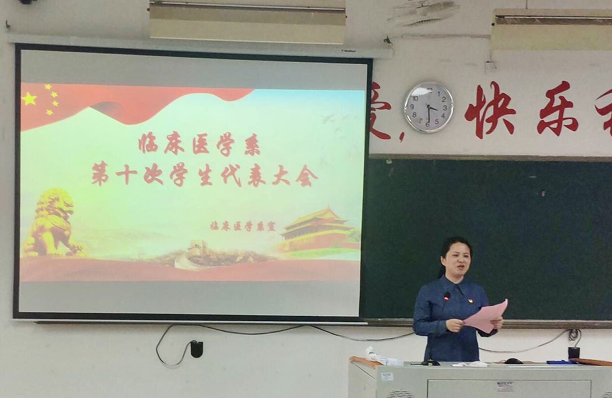 為認(rèn)真總結(jié)我系學(xué)生會在這一年以來的工作,確立今后的工作任務(wù)和奮斗目標(biāo),同時選舉產(chǎn)生新一屆的臨床系學(xué)生會主席團(tuán)成員。我系于2019年3月21日在教學(xué)樓210教室舉行臨床醫(yī)學(xué)系第十次學(xué)生代表大會。臨床醫(yī)學(xué)系黨總支陳俊穎副書記、團(tuán)總支書記葉家濤書記、團(tuán)總支謝林輝副書記、我系各輔導(dǎo)員們兩委會成員以及各班級代表參加了此次大會。