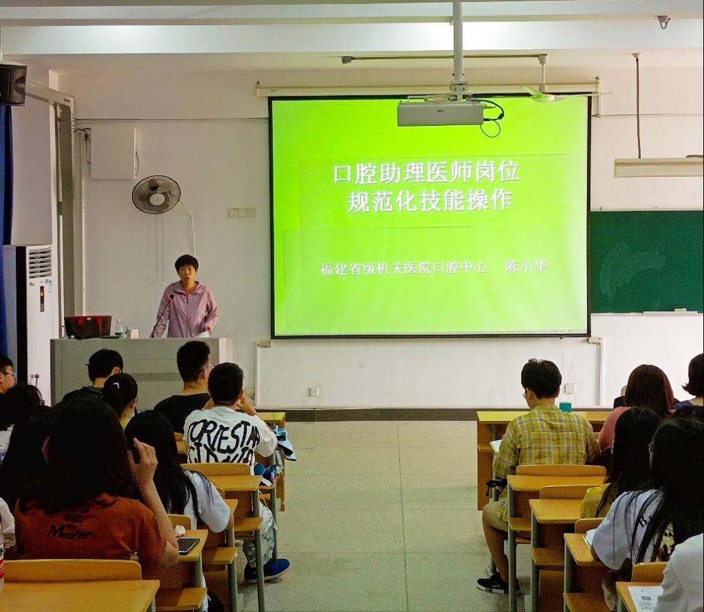 5月23日,應(yīng)醫(yī)學(xué)系邀請,附屬醫(yī)院福建省級機(jī)關(guān)醫(yī)院副院長、國際牙科醫(yī)師學(xué)院院士(ICD)、福建省口腔質(zhì)量控制中心副主任潘在興教授,附屬醫(yī)院口腔中心副主任陳小華主任醫(yī)師到校為即將畢業(yè)的2018級口腔醫(yī)學(xué)專業(yè)學(xué)生分別做了《口腔臨床醫(yī)師診斷思路解析》、《口腔助理醫(yī)師崗位規(guī)范化技能操作》專題講座,醫(yī)學(xué)系邱滾忠書記、林國威副主任、林浩副主任、口腔教研室全體教師也一起到場聆聽了報(bào)告。