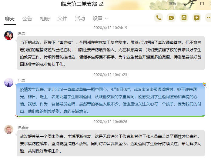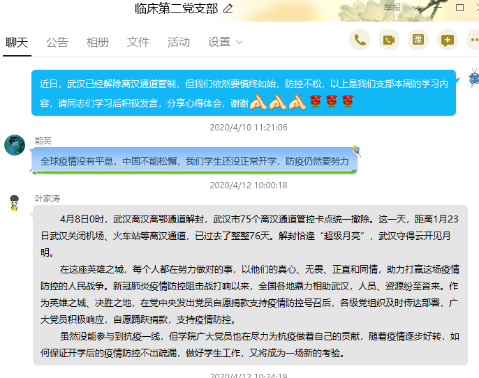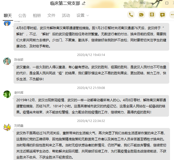 臨床醫(yī)學系第二黨支部組織開展關(guān)于武漢解除管制措施線上學習交流黨日活動