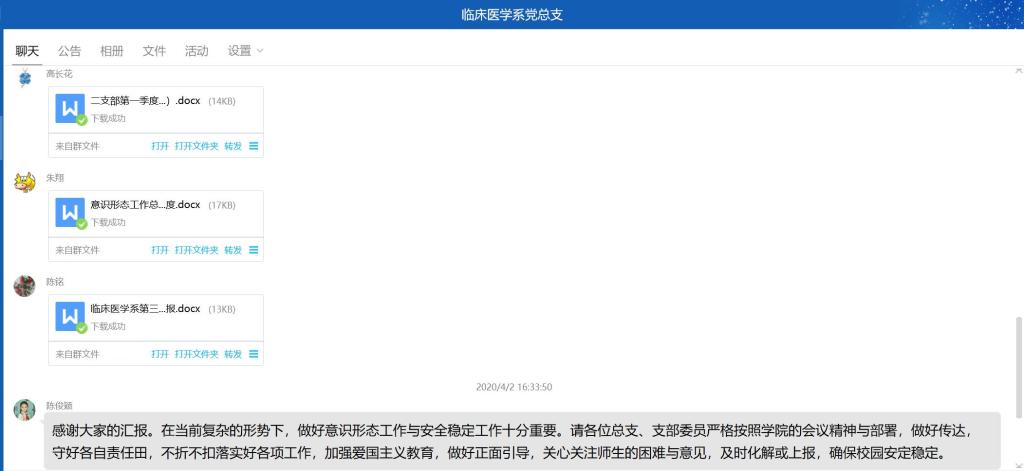 4月2日,臨床醫(yī)學(xué)系2020年第一季度意識形態(tài)及安全工作會議,同時4月份的黨支部書記例會于線上召開。系黨總支委員及支部書記參加會議,會議由黨總支負責人陳俊穎主持。