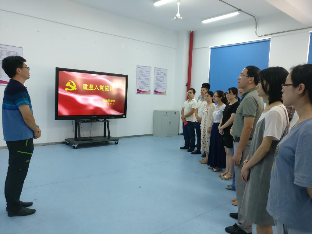 2019年7月1日,在中國共產黨成立98周年之際,為進一步教育引導全體黨員不忘初心、牢記使命,臨床醫(yī)學系第一、第二、第三黨支部在實訓樓401舉辦“重溫入黨誓詞,牢記初心使命”主題黨日活動。