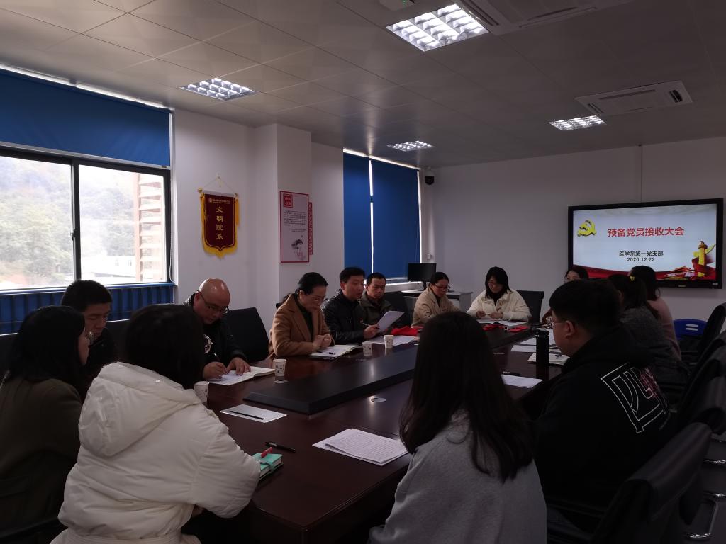 2020年12月22日中午,醫(yī)學(xué)系第一黨支部在實(shí)訓(xùn)樓311召開(kāi)接收預(yù)備黨員大會(huì)。會(huì)議由支部書(shū)記朱翔主持,支部11名正式黨員除事假1名,其余10名黨員全部參會(huì)。