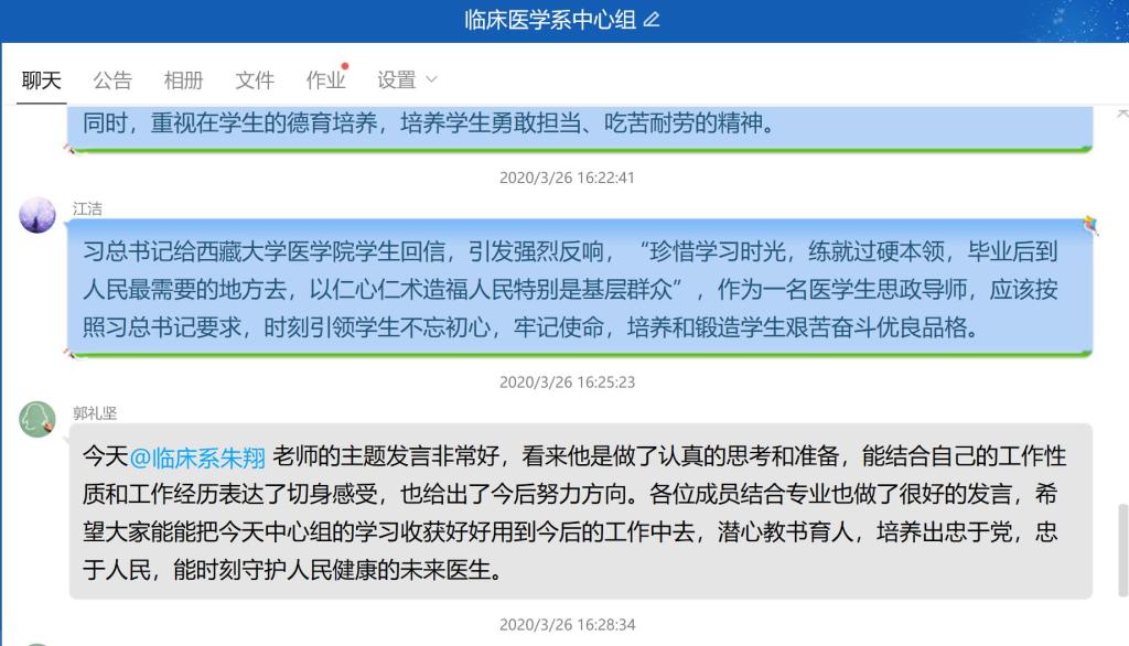 2020年3月26日,臨床醫(yī)學(xué)系在線召開中心組(擴(kuò)大)學(xué)習(xí)會議,學(xué)習(xí)中共中央辦公廳印發(fā)《黨委(黨組)落實(shí)全面從嚴(yán)治黨主體責(zé)任規(guī)定》、習(xí)近平總書記給在首鋼實(shí)習(xí)的西藏學(xué)生回信、習(xí)近平總書記在脫貧攻堅(jiān)座談會上的講話等,會議由系主任郭禮堅(jiān)同志主持。