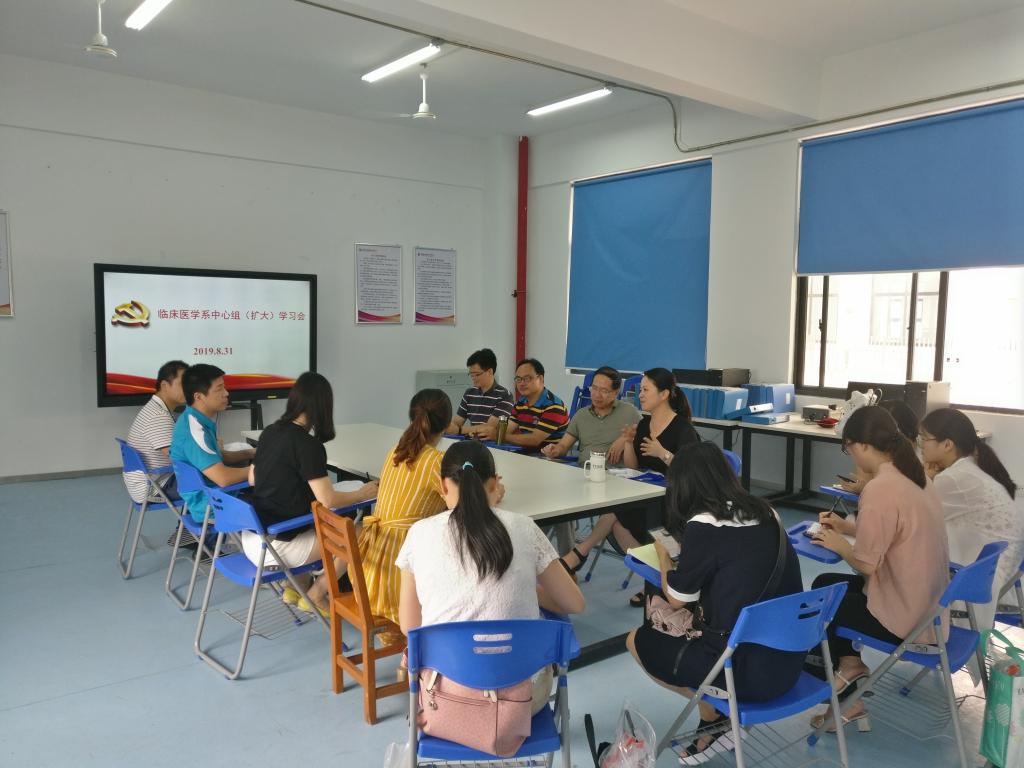 2019年8月31日, 臨床醫(yī)學系在系部會議室召開中心組學習(擴大)會議,學習2019年福建省哲學社會科學教學科研骨干研修班精神,會議由黨總支負責人陳俊穎同志主持。