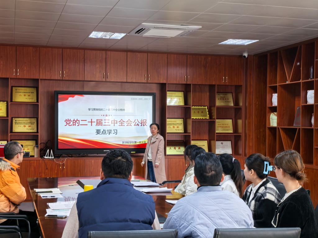 2024年12月19日,醫(yī)學(xué)院學(xué)生第一黨支部書記江潔為支部全體黨員上了一堂內(nèi)容豐富的黨課,旨在幫助黨員們深入理解黨的二十屆三中全會精神,激發(fā)他們在學(xué)習(xí)、工作和生活中積極踐行黨的最新理論成果。