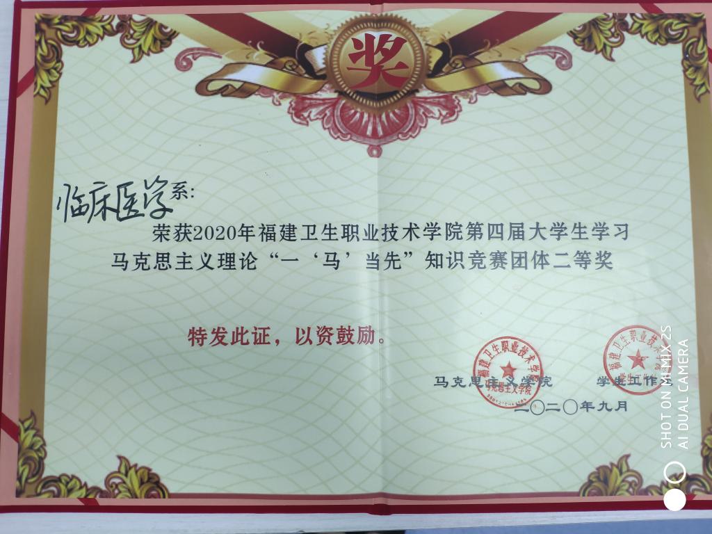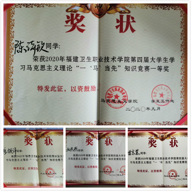 9月23日,我校第四屆大學生學習馬克思主義理論“一‘馬’當先”知識競賽的決賽在實訓樓四樓報告廳舉行。經(jīng)過前期的初賽和復賽,我系派出了由19康復302廖婉洋、陳詩欽、19針推301張燕燕、19中醫(yī)學301雷京慧四位同學組成的參賽隊伍,通過必答環(huán)節(jié)、淘汰環(huán)節(jié)、對擂賽環(huán)節(jié)激勵的角逐,我系榮獲第四屆大學生學習馬克思主義理論“一‘馬’當先”知識競賽團體二等獎,同時19康復302陳詩欽斬獲個人一等獎,其他三位同學分別榮獲個人三等獎和優(yōu)秀獎。