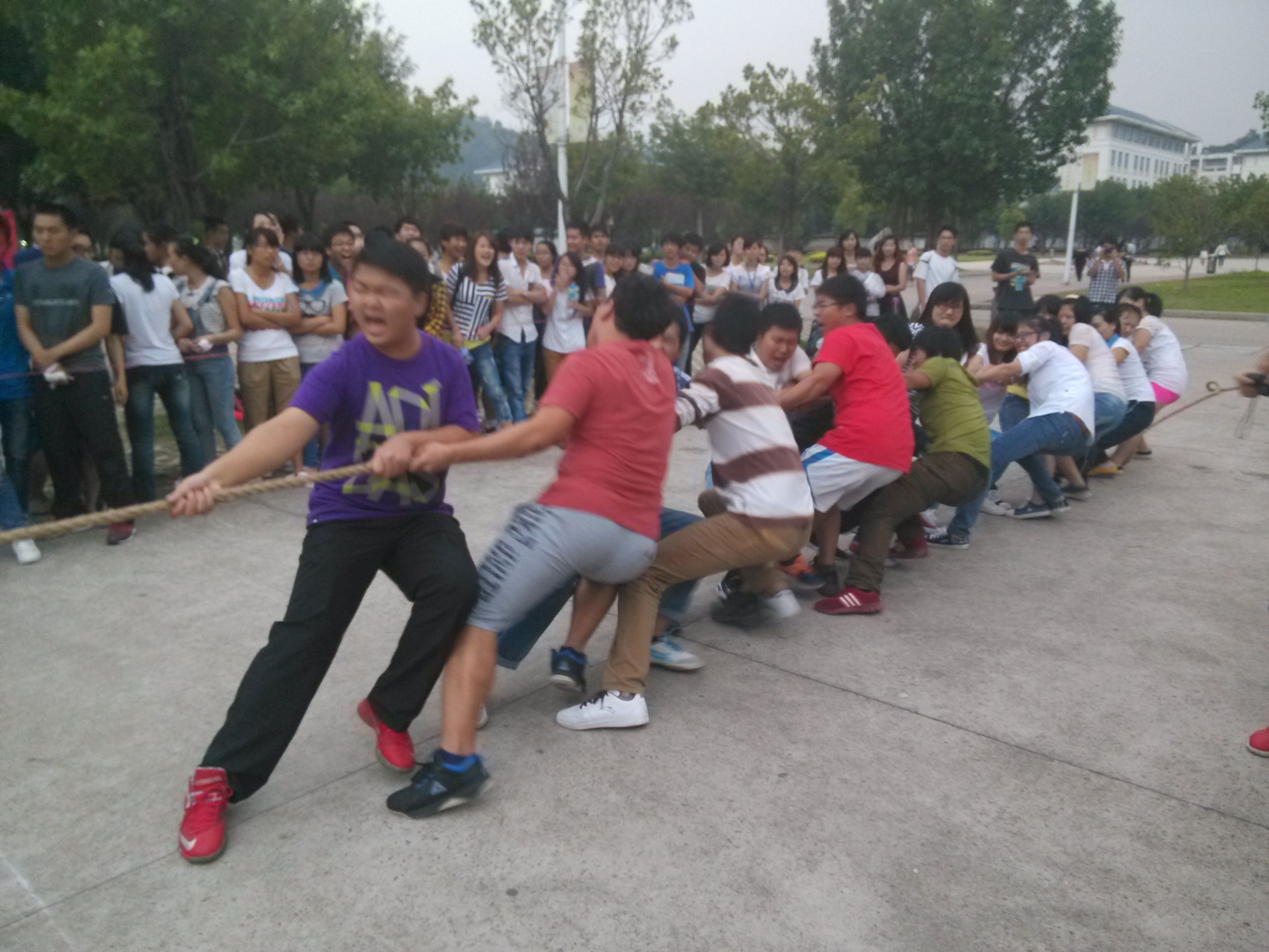 本次比賽以班級(jí)為單位,每班派出16名選手男女混搭,共有17支隊(duì)伍參加了比賽。下午16:40比賽正式開始, 現(xiàn)場氣氛異常高漲,雙方隊(duì)員緊緊抓牢手中的繩子,下腰勒繩,重心降低,腳抵腳,齊心協(xié)力往后拉,整個(gè)賽事跌宕起伏,扣人心弦,各隊(duì)的拉拉隊(duì)助威聲此起彼伏,給足了隊(duì)員們信心,隊(duì)員們咬緊牙關(guān),使勁全力,雖然臉憋得通紅,但還是堅(jiān)持著,絲毫不松手。