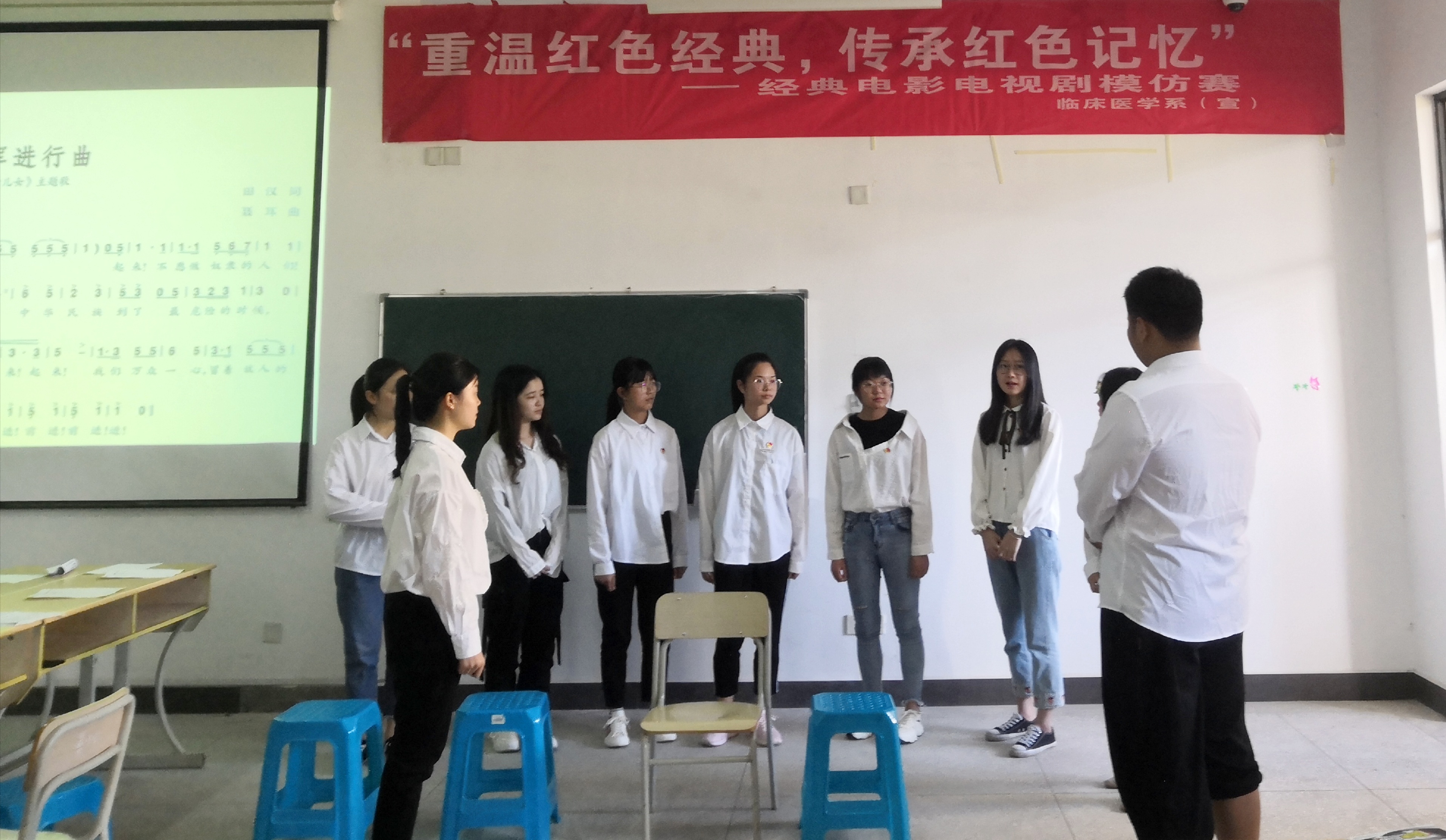 為慶祝中華人民共和國成立70周年和五四運(yùn)動100周年,加深同學(xué)們對紅色文化的理解、激發(fā)同學(xué)們的愛國情懷,營造出積極向上、健康文明的校園文化氣氛,臨床醫(yī)學(xué)系于2019年5月30日在實(shí)訓(xùn)樓208舉辦重溫紅色經(jīng)典,傳承紅色記憶——臨床醫(yī)學(xué)系舉辦紅色經(jīng)典電影模仿大賽。系團(tuán)總支副書記謝林輝、輔導(dǎo)員劉明鑫及2018級全體團(tuán)學(xué)干部擔(dān)任了此次活動的評委。