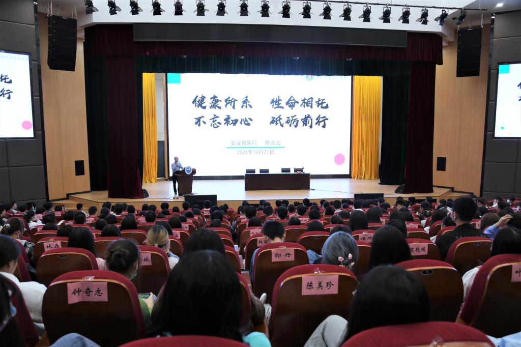2021年10月21日下午,我校優(yōu)秀畢業(yè)生代表、安溪縣醫(yī)院院長陳鑫壇在學(xué)術(shù)廳為醫(yī)學(xué)系六年制高職本科貫通臨床專業(yè)和中醫(yī)、康復(fù)、口腔、針推、中康等專業(yè)約400名同學(xué)帶來了一場異常精彩的講座。