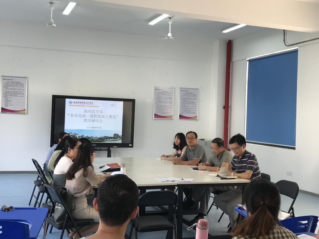 為進一步深化課程思政改革,強化教師隊伍建設,2019年10月10日下午臨床醫(yī)學系在實訓樓401室召開以“春風化雨-課程思政之我見”為主題的專題研討會,臨床醫(yī)學系全體教師參與此次專題研討會。