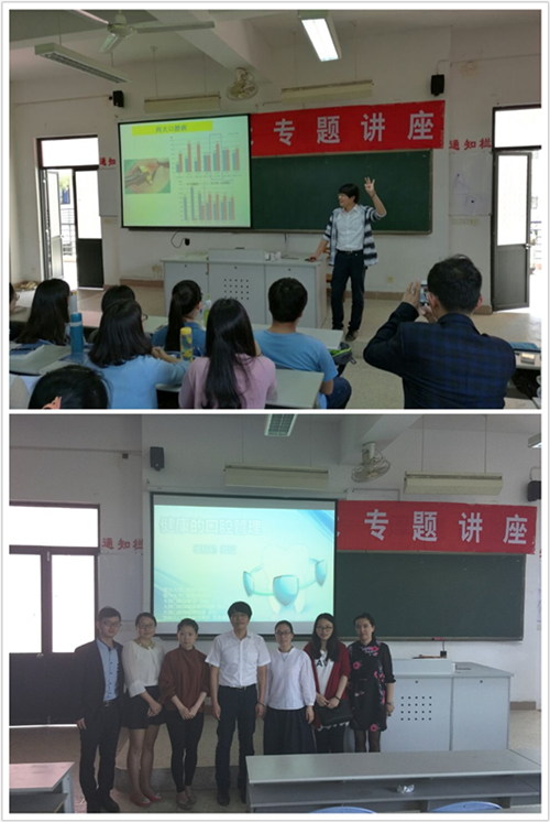 講座前東南口腔醫(yī)院負責人介紹了東南口腔醫(yī)院整體情況,并歡迎同學們踴躍報名到東南口腔醫(yī)院實習,為即將實習的14級口腔專業(yè)學生進一步拓展了校外口腔實訓基地。