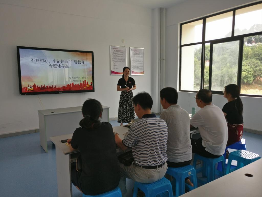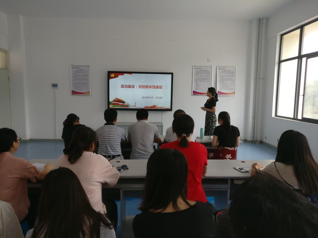 2019年10月8日,臨床醫(yī)學(xué)系黨總支在實訓(xùn)樓409召開“不忘初心、牢記使命”主題教育專題輔導(dǎo)課暨黨支部書記輪訓(xùn),主題為“政治建設(shè):黨的根本性建設(shè)”,由系黨總支負(fù)責(zé)人陳俊穎主持,系全體教師黨員參與。