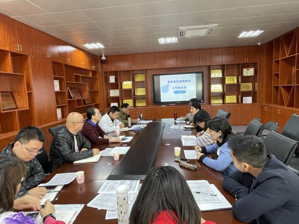 為進(jìn)一步統(tǒng)一思想、提高站位,確保省級“雙高校”建設(shè)高質(zhì)量推進(jìn),11月11日上午,醫(yī)學(xué)系在實(shí)訓(xùn)樓311召開省級“雙高校”建設(shè)工作推進(jìn)會(huì)。副校長鄭翠紅應(yīng)邀參加會(huì)議并指導(dǎo)工作,系黨政班子領(lǐng)導(dǎo)、各專業(yè)帶頭人、負(fù)責(zé)人及教研室主任等參會(huì),會(huì)議由系黨總支書記邱滾忠主持。