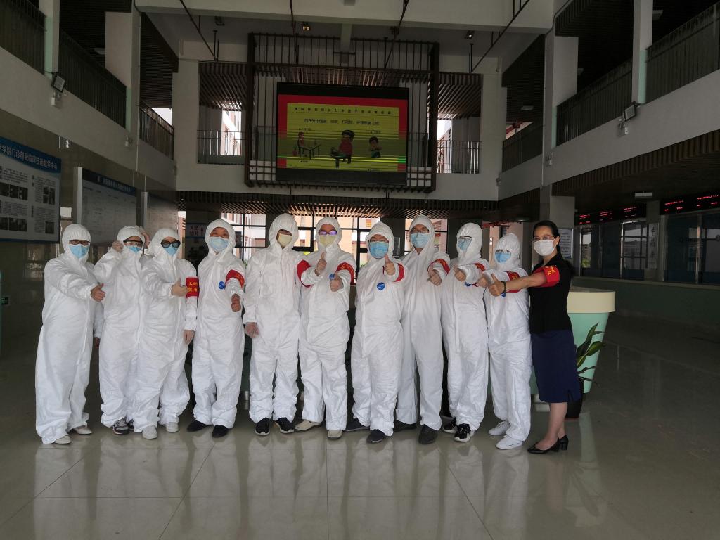 衛(wèi)生防疫突擊隊在此次疫情防控中充當重要的角色。黨員巫詩雨表示:“此次復學防疫實戰(zhàn)演練,作為衛(wèi)生防疫突擊隊的一員,我負責南門測溫點的測溫工作,穿上防護服感覺很熱、很悶,而戴上護目鏡會出現霧氣,這是我的第一感受,尤其當天溫度較高,當我走到室外指定的測溫點,開始工作一段時間后,更是明顯。這令我不由得想到,在這次疫情期間,那些用生命擔當使命,勇敢地站在抗疫斗爭的最前線,奮斗在臨床一線的醫(yī)務人員,他們的裝備比我現在厚得多得多,工作更是艱巨得難以想象,承受著難以想象的身體和心理壓力,令人感動、敬佩,是新時代最可愛的人。”負責教工體溫測量的黨員蔡唐彥也表示:“我院以高度的責任心和對學生負責的態(tài)度,積極落實新冠肺炎的校園疫情防控工作。在院領導的帶領下,各部門制定方案、精心準備、密切配合,對各種可能發(fā)生的場景進行模擬演練。我認為通過演練,可以發(fā)現問題,解決問題,為接下來復學“實戰(zhàn)”提供經驗,為廣大師生的健康保駕護航。從演練中我更深切地認識到自己肩上的責任,雖然只是簡單的測體溫,也要守好這道關卡。作為黨員突擊隊的一份子,要發(fā)揮黨員的先鋒模范作用,立足崗位,履職盡責?!?/p>