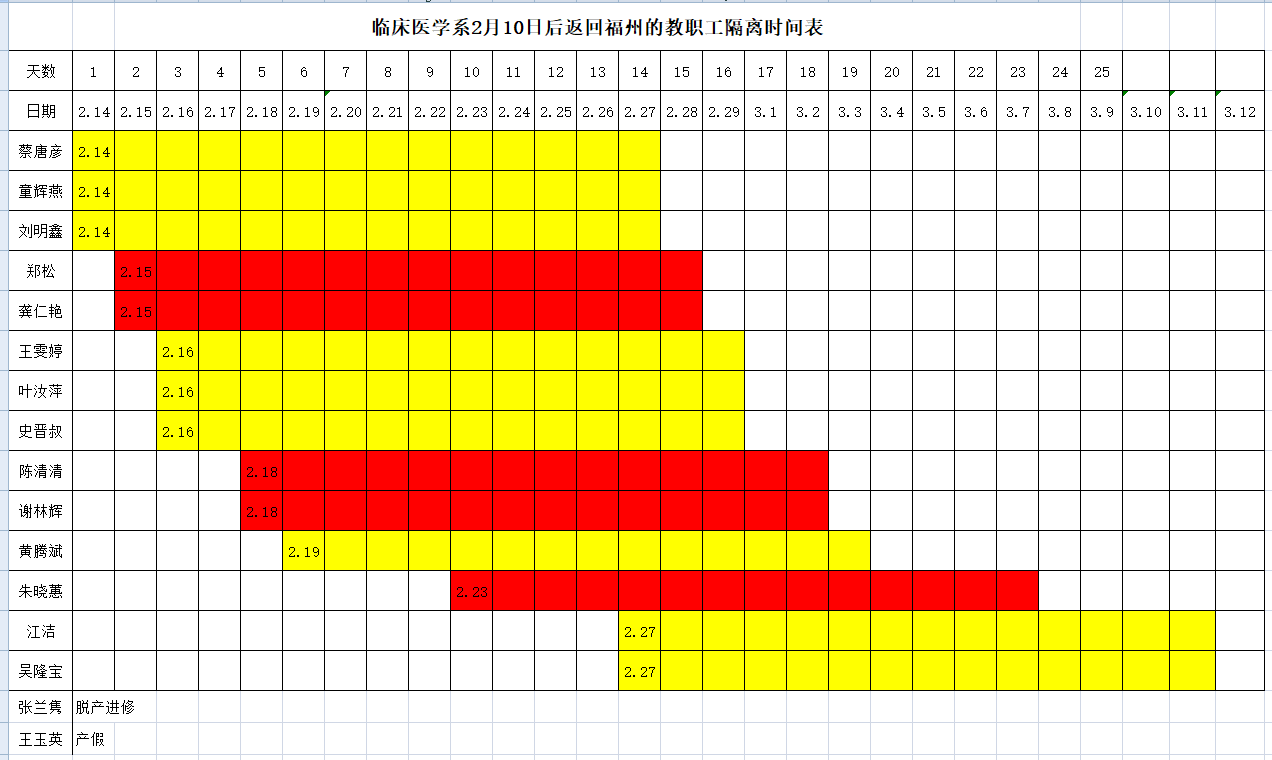 三、教務后勤組:1.繼續(xù)匯總本系教職工健康與動向;2.了解還在外地教職工情況,安排近日返福州;3.督促返福州的教職工居家隔離14天;4.督促教師收看《新冠肺炎防控第一課》;5.督促教師按校歷表按進度表合理有效的網(wǎng)上授課。